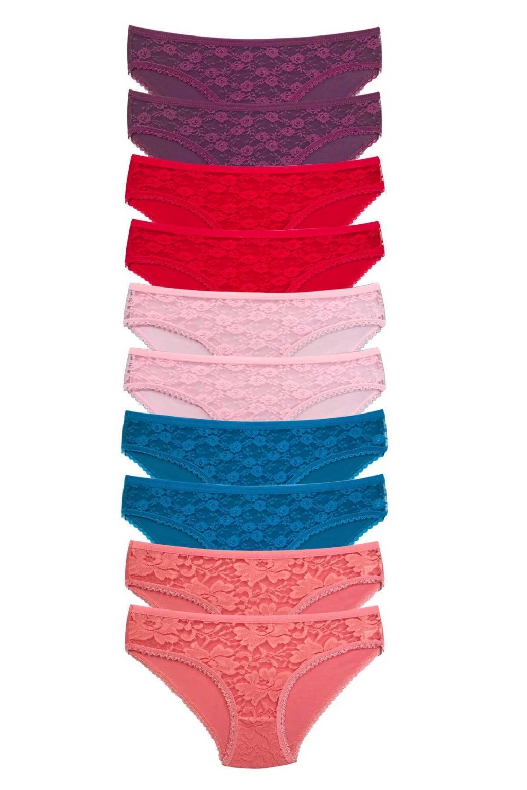 10 Adet Önü Dantelli Transparan Kadın Slip Külot S230