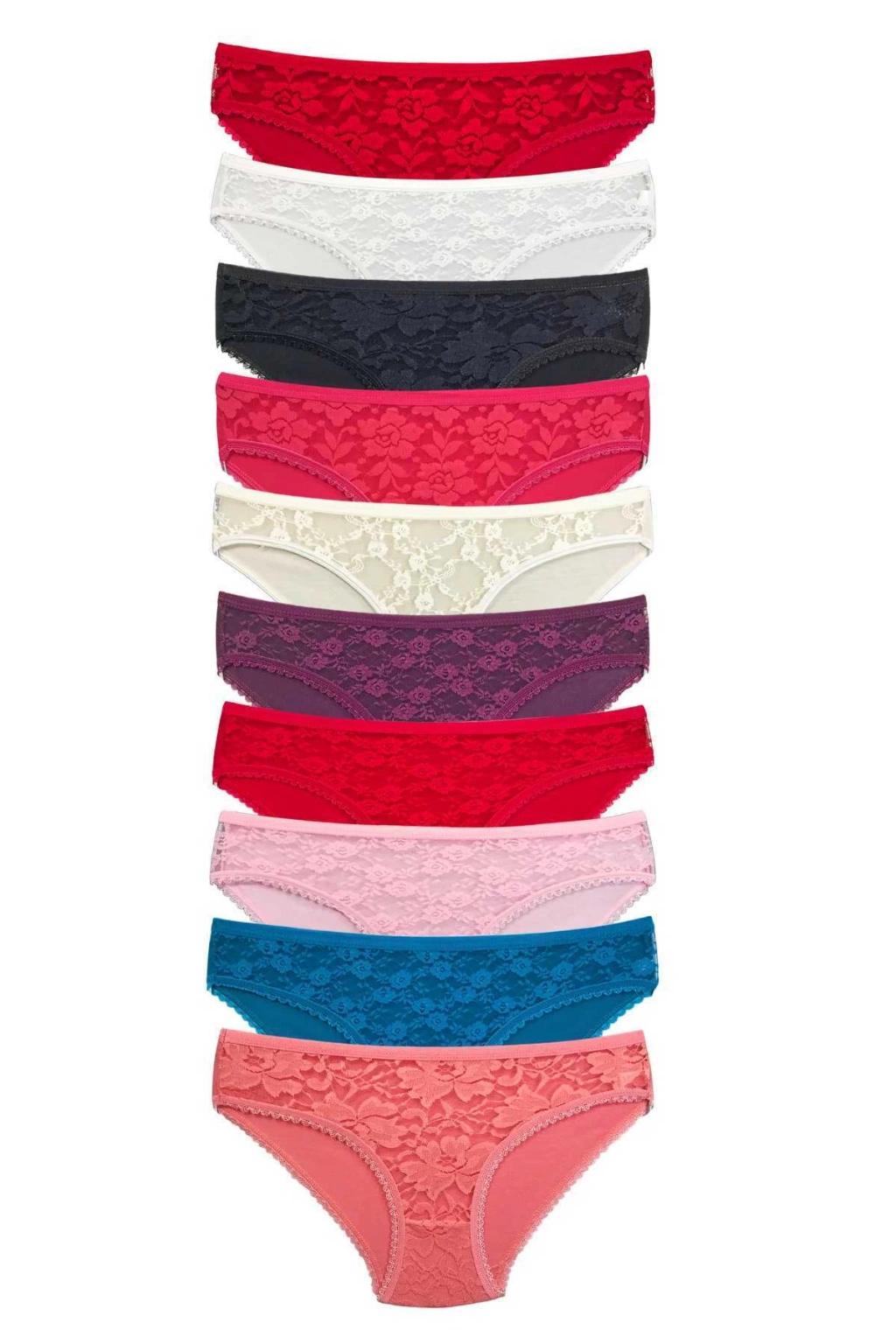10 Adet Önü Dantelli Transparan Kadın Slip Külot S231