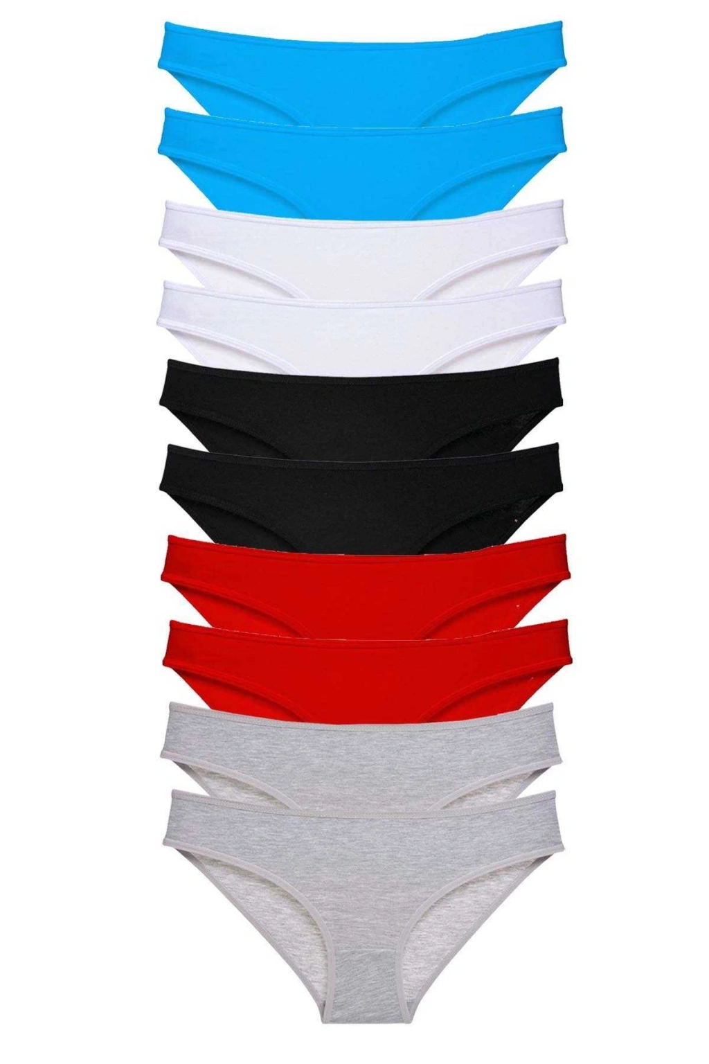 10 adet Süper Eko Set Likralı Kadın Slip Siyah Kırmızı Gri Beyaz Mavi