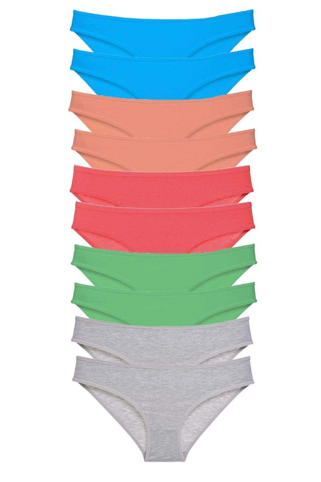 10 adet Süper Eko Set Likralı Kadın Slip Gri Pudra Yeşil Fuşya Mavi