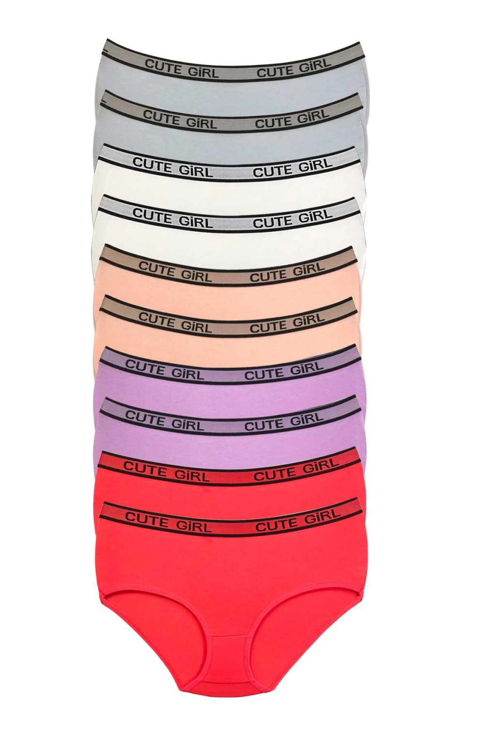 10 Adet Yüksek Bel Kalın Lastikli Beli Yazılı Kadın Şort Külot