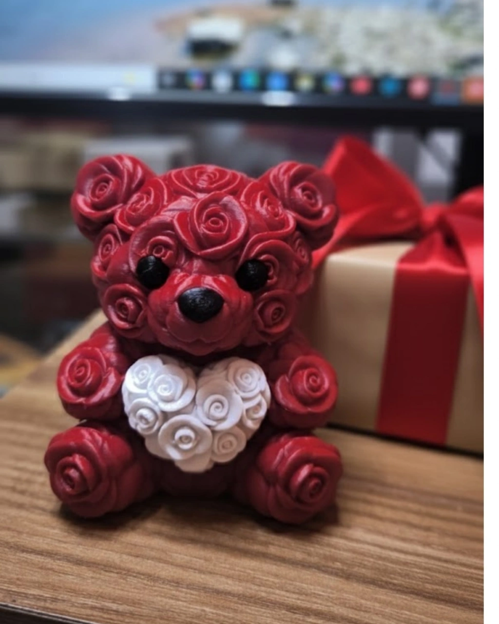 Bu 10 cm 3D kalp ayıcık, modern tasarım anlayışı ile romantik temayı bir araya getirir. Gül desenli yüzey yapısı ürüne üç boyutlu bir derinlik kazandırır. Kalp detayı ise ürünü sadece dekoratif değil aynı zamanda anlamlı bir hediye haline getirir.Kompakt yapısı sayesinde küçük alanlarda bile rahatlıkla sergilenebilir. Ofis masası, sehpa, komodin veya vitrin üzerinde es bir tamamlayıcı olarak kullanılabilir.3D baskı üretim kalitesi sayesinde detaylar belirgin, yüzey pürüzsüzdür. Uzun ömürlü kullanım için tasarlanmıştır.Romantik atmosfer oluşturmak isteyenler için ideal bir dekor ürünüdür.