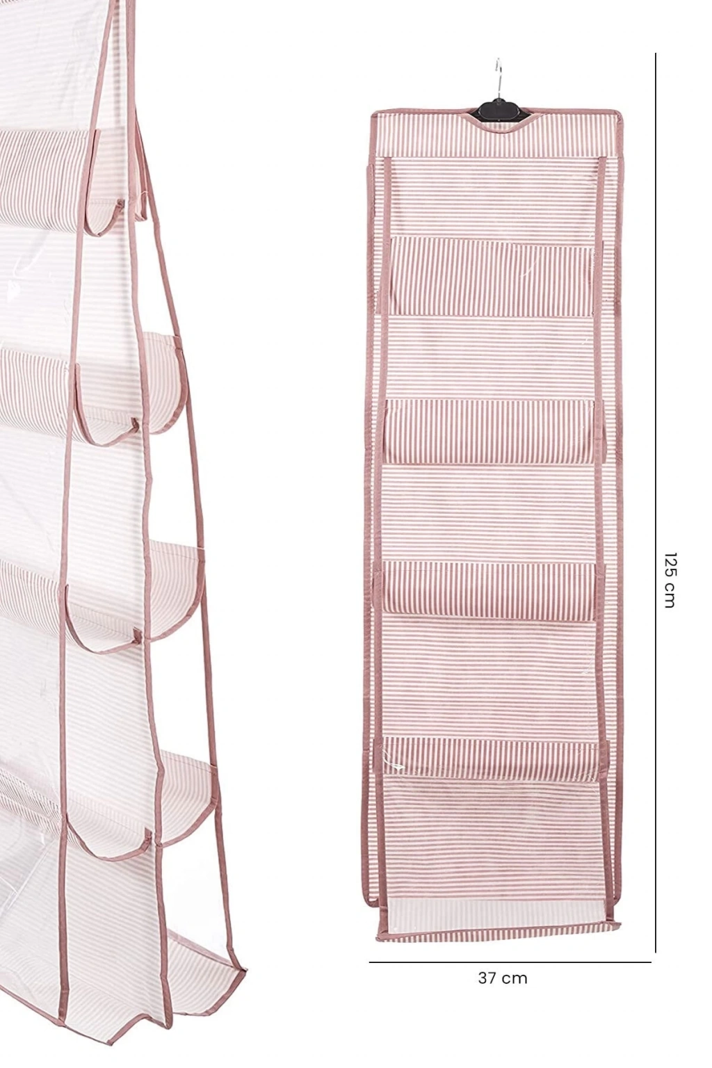 -Şeffaf pvc malzemeden üretilmiştir -10 adet gözü bulunmaktadır -Askılı sistemi ile kapı arkası veya dolap içlerinde kullanılmaktadır -37cm x 125cm Stok durumuna göre farklı renklerde ve desende gönderilebilmektedir.