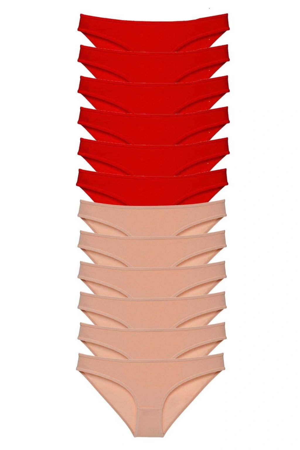 12 adet Süper Eko Set Likralı Kadın Slip Külot Kırmızı Ten