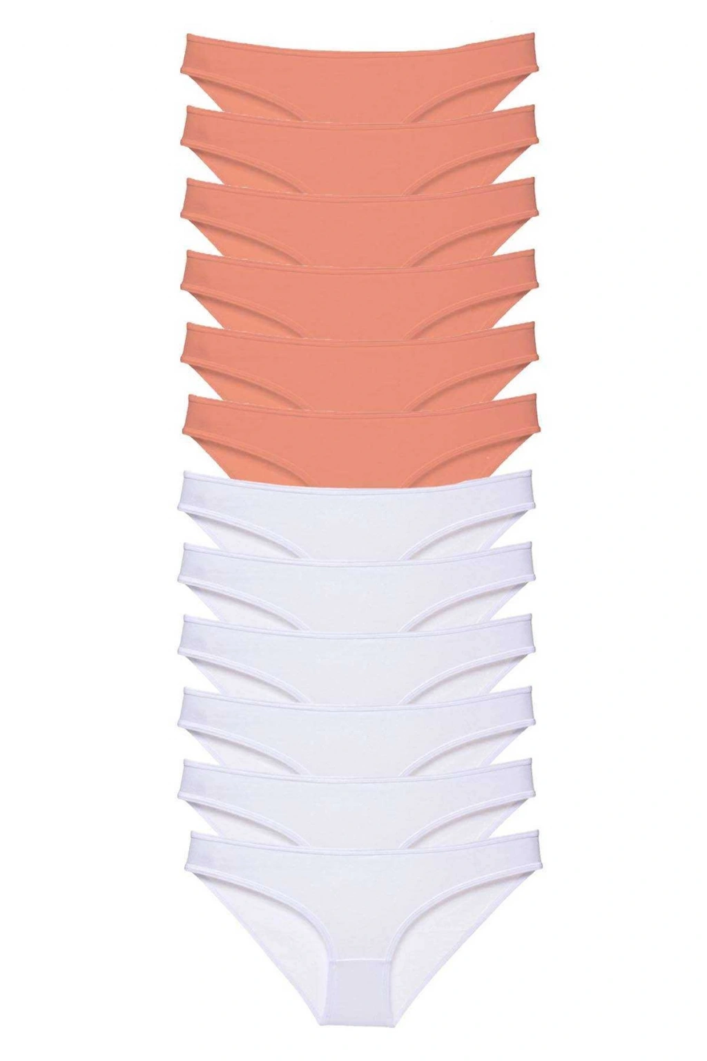 12 adet Eko Set Likralı Kadın Slip Külot Pudra Beyaz
