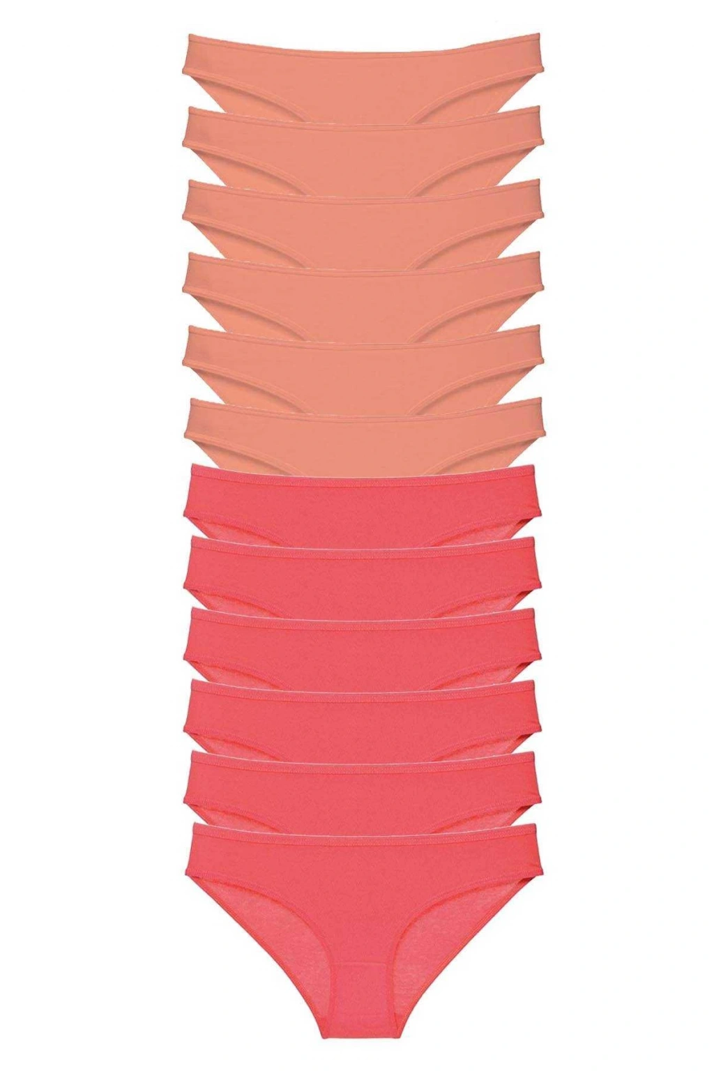 12 adet Süper Eko Set Likralı Kadın Slip Külot Pudra Fuşya