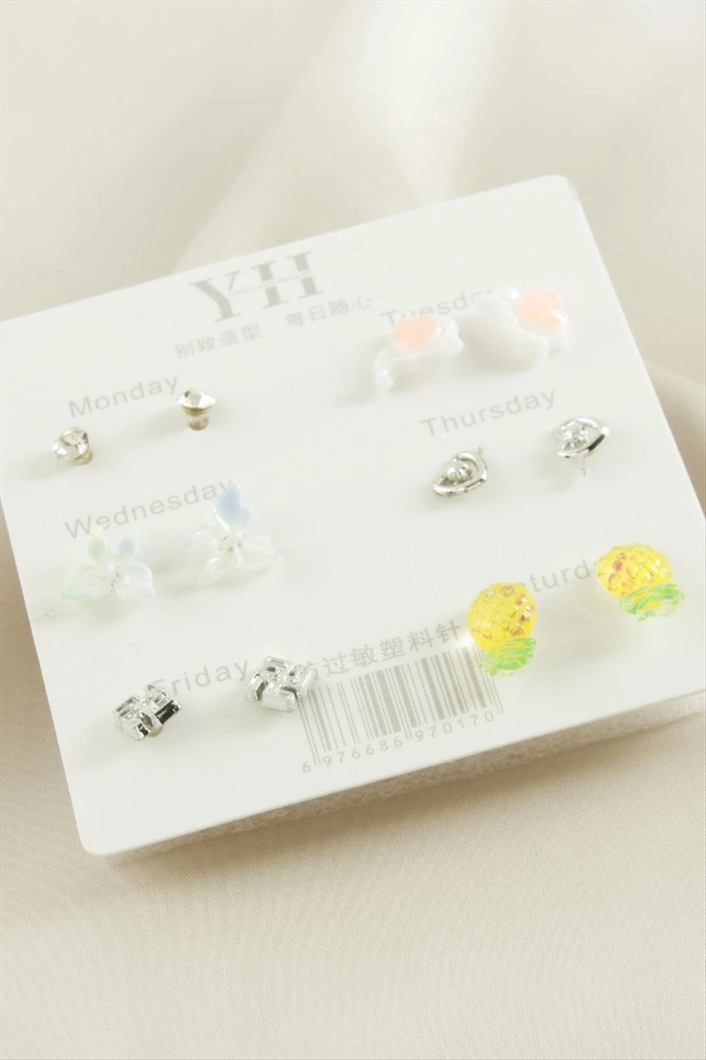 Küpe; Ürün malzemesi plastik, metal ve taştır. 1 kart olarak satılmaktadır. 1 kartta 12 adet küpe bulunmaktadır.