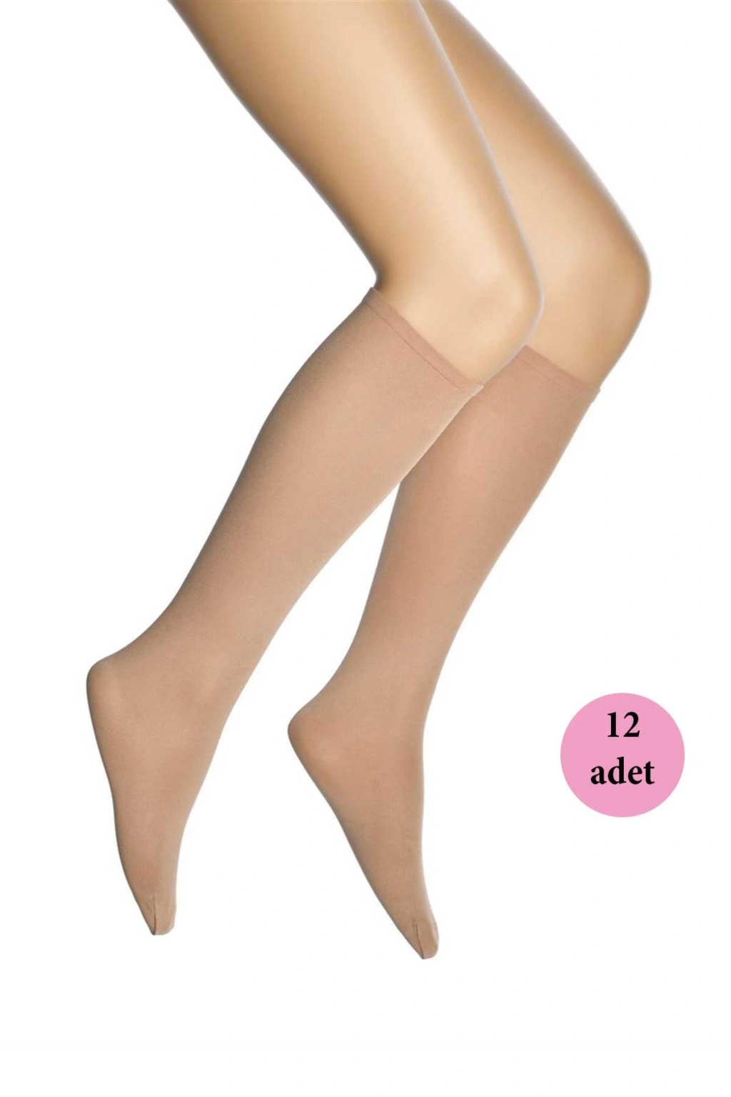 12 Adet Mikro 70 Dizaltı Kadın Çorap Ten 57