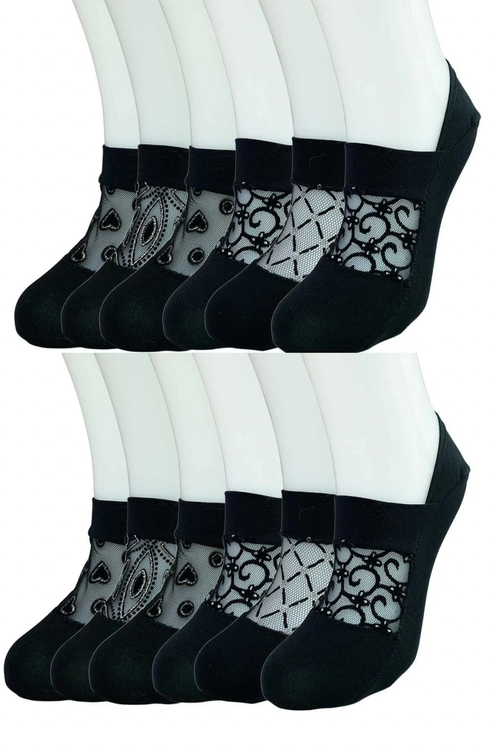 12 Adet Önü Transparan Kadın Fantezi Desenli Babet Çorap