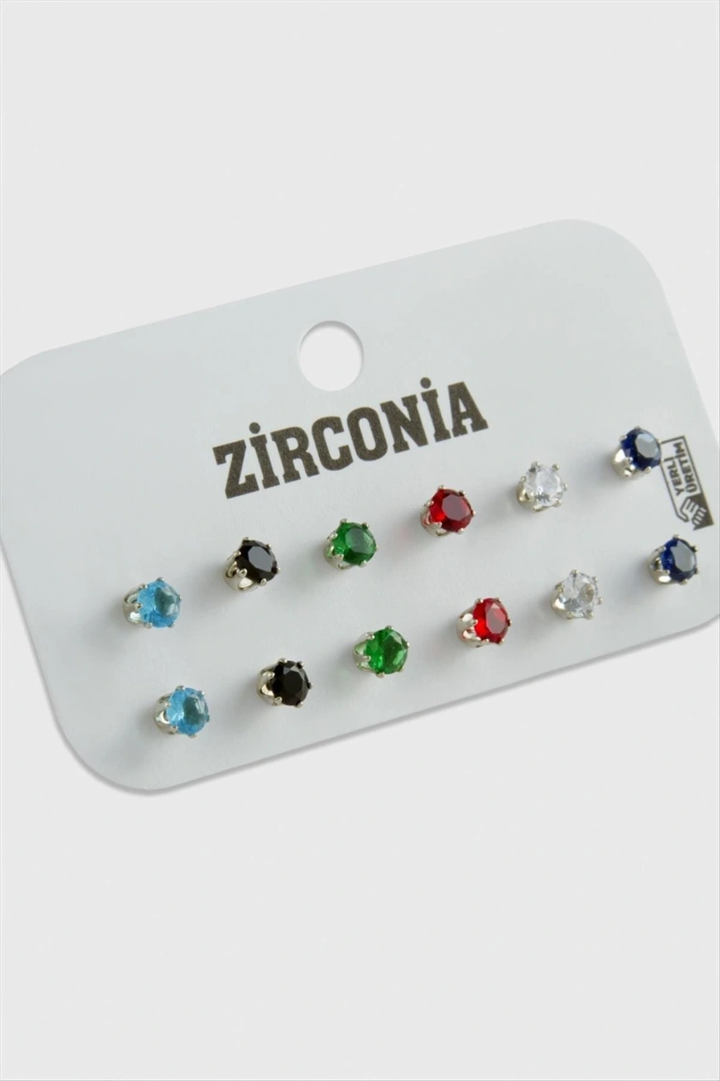 Küpe; Ürün malzemesi zirkon taş ve metaldir. Küpe boyları yaklaşık 0,6-0,5-0,4 cmdir. Kartıyla beraber gönderilecektir. 1 kartta 12 adet olarak satılacaktır.