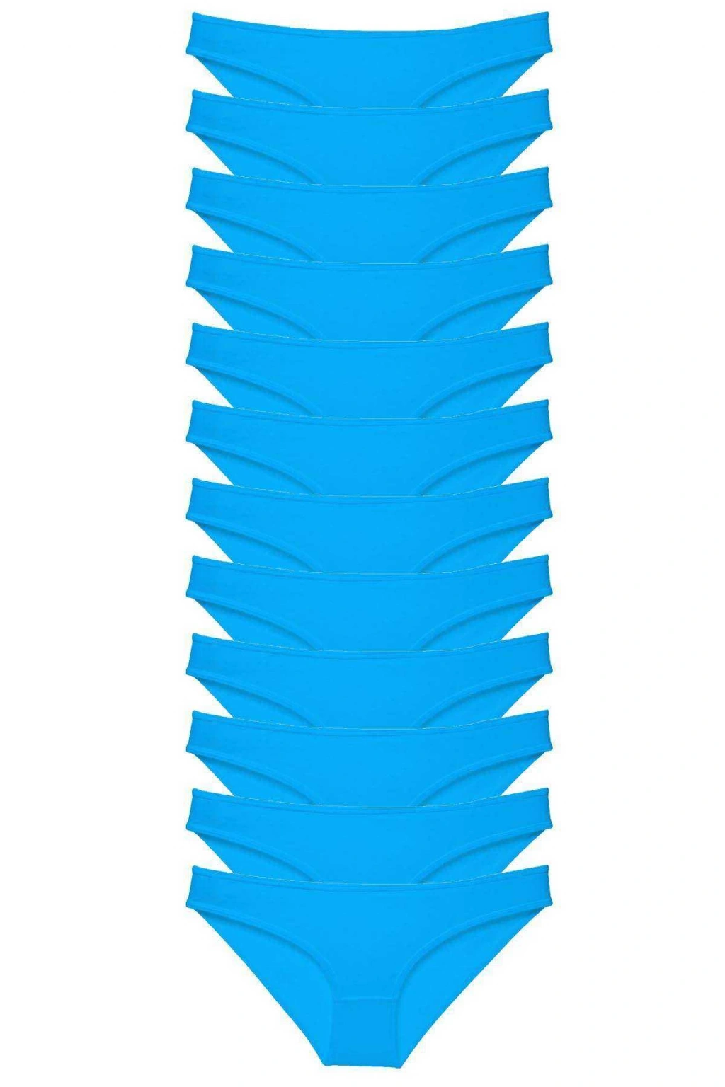 12 adet Süper Eko Set Likralı Kadın Slip Külot Mavi
