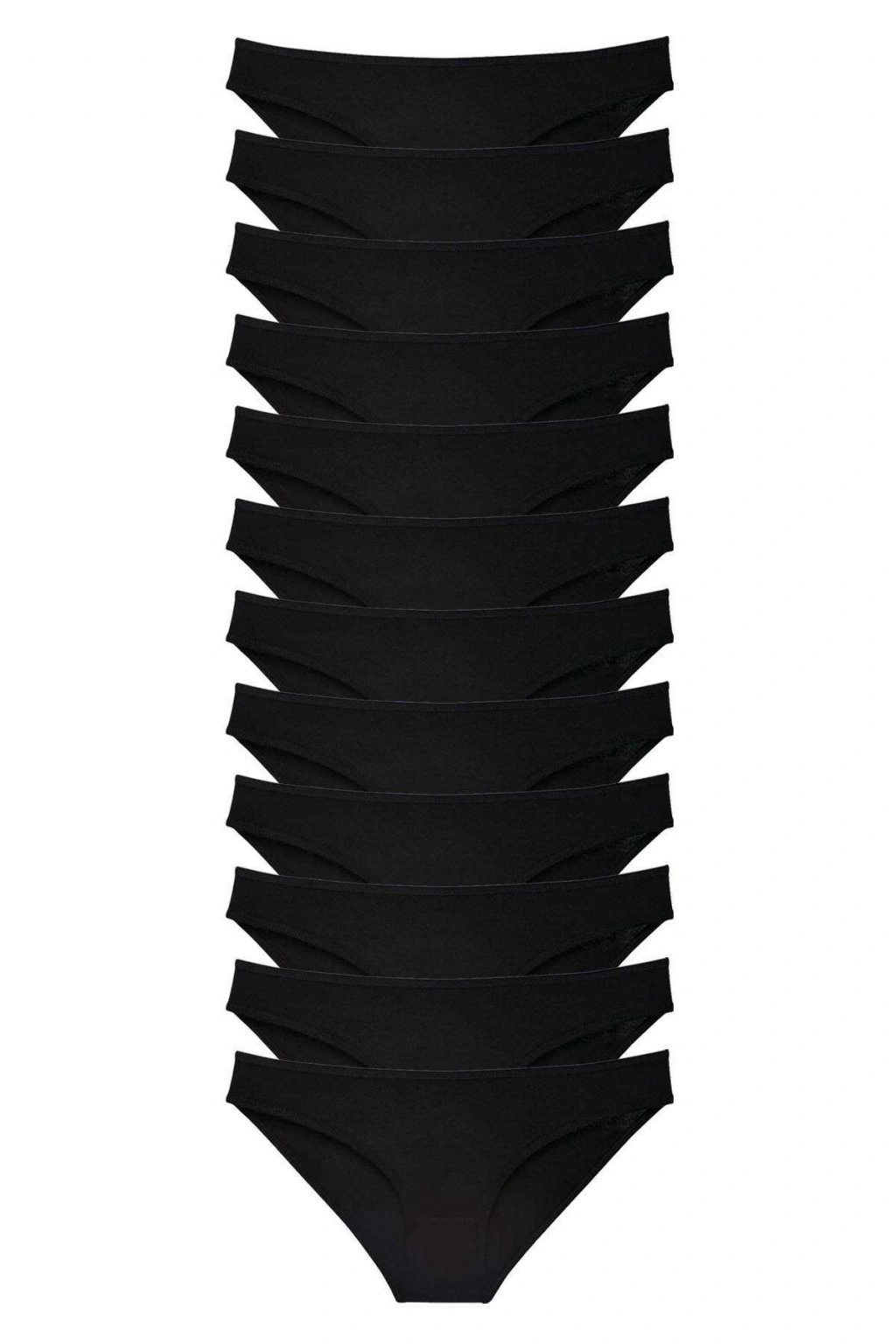 12 adet Süper Eko Set Likralı Kadın Slip Külot Siyah