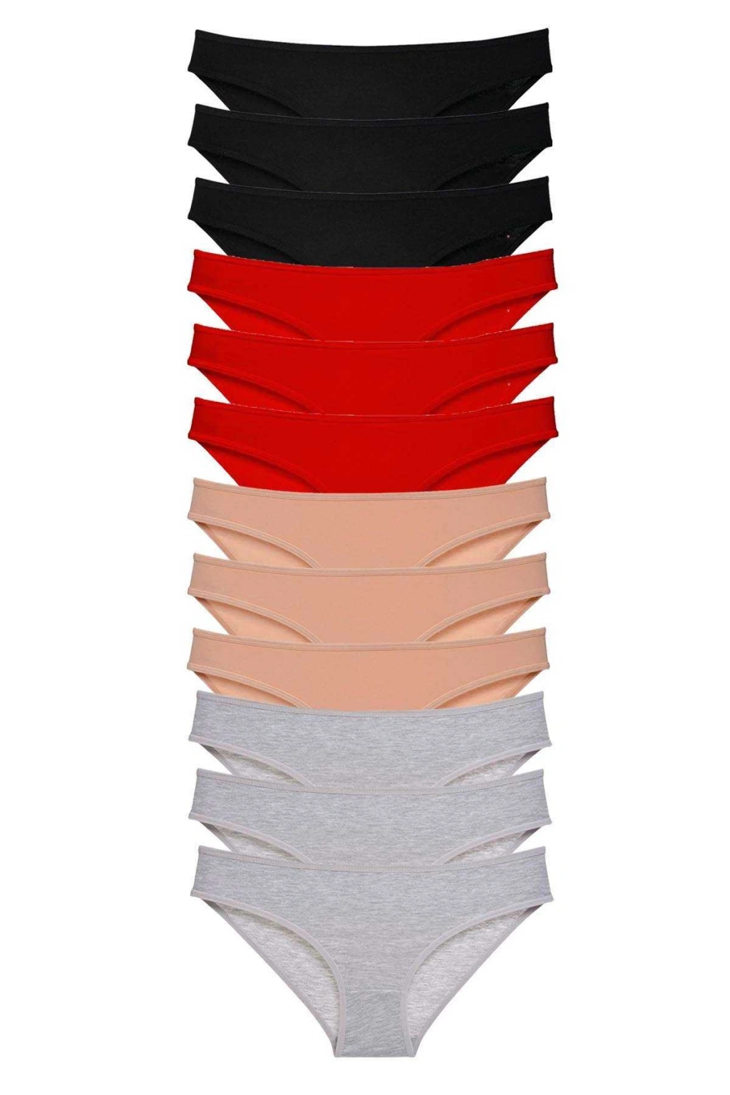 12 adet Süper Eko Set Likralı Kadın Slip Külot Siyah Kırmızı Ten Gri