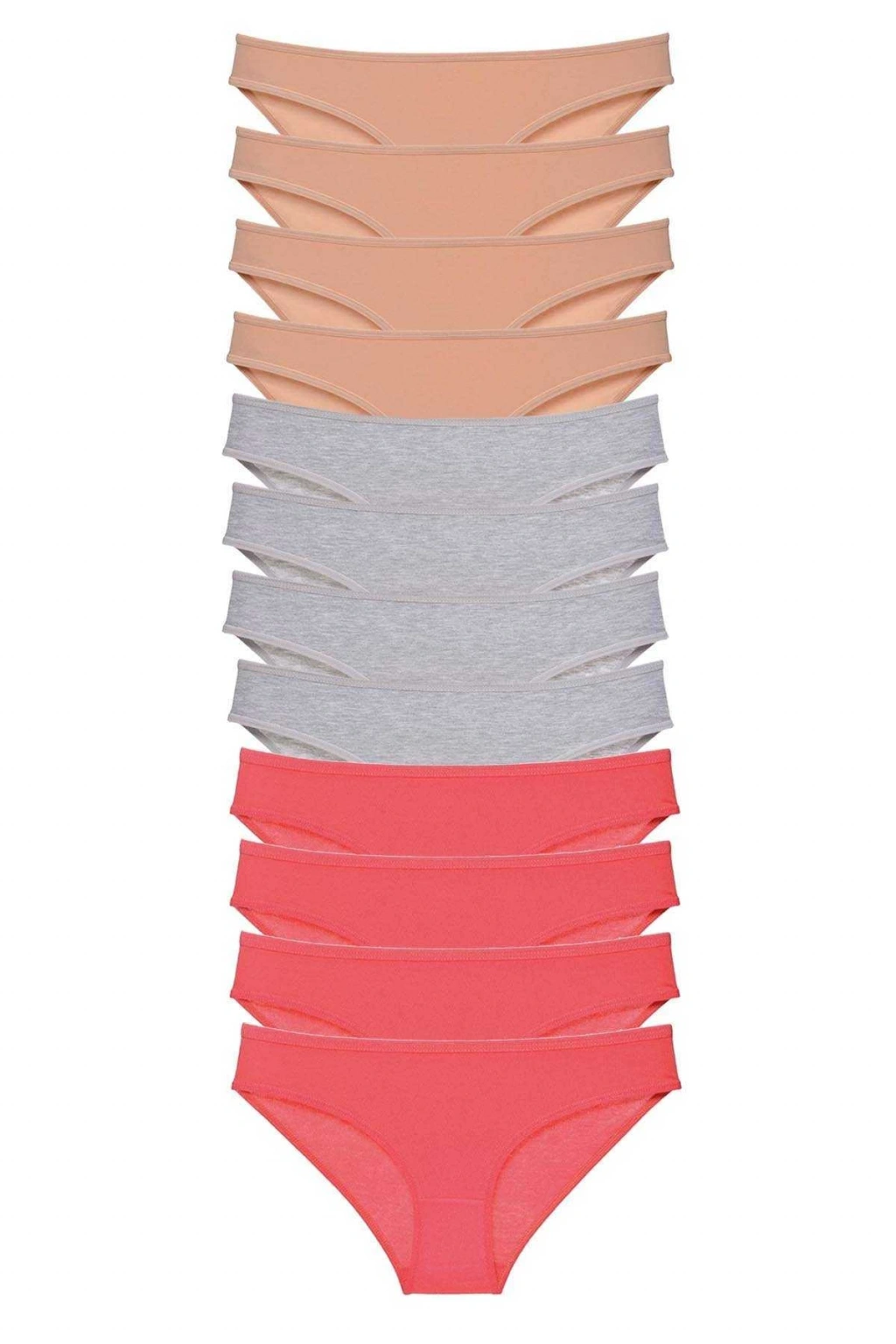 12 adet Süper Eko Set Likralı Kadın Slip Külot Ten Gri Fuşya