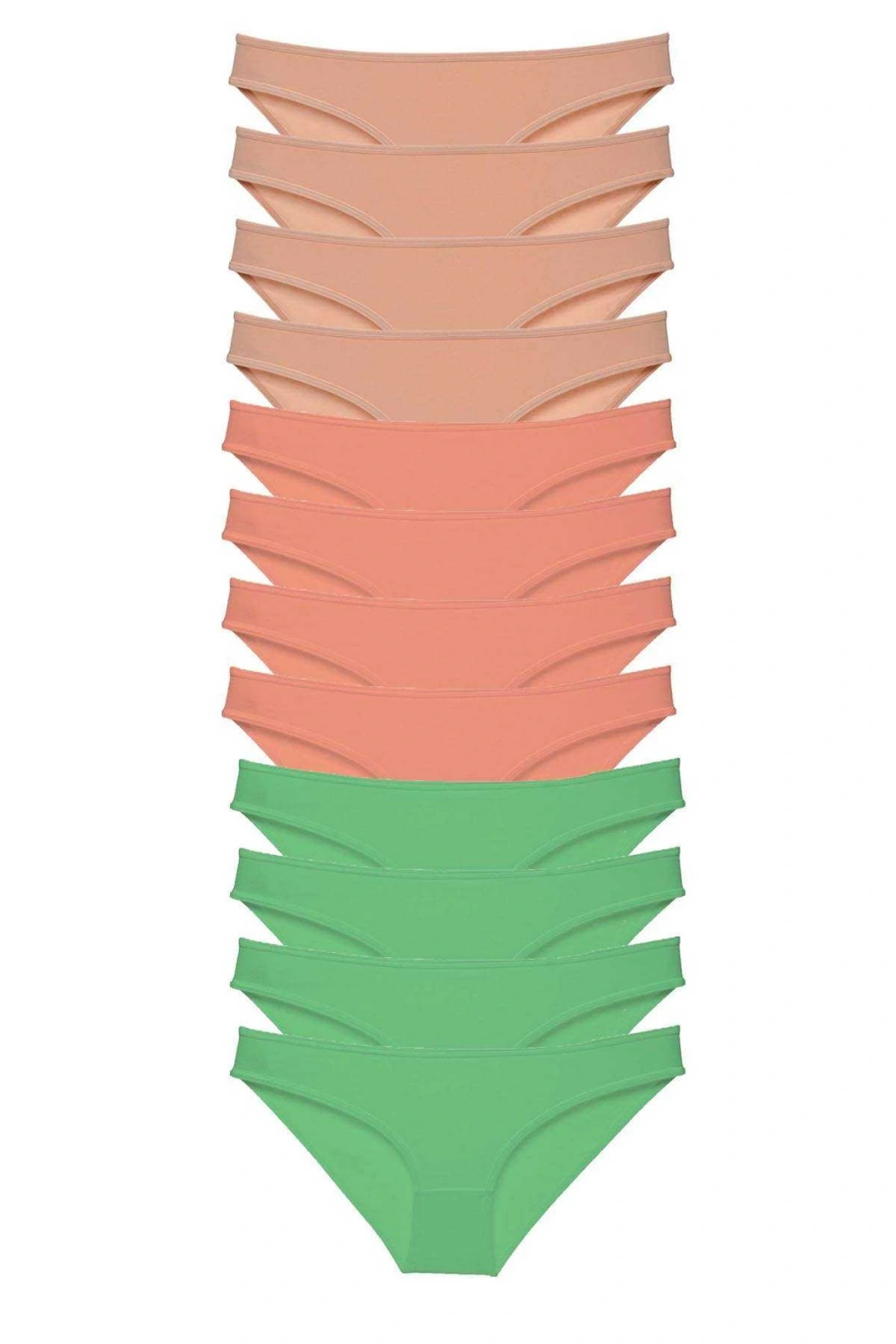 12 adet Süper Eko Set Likralı Kadın Slip Külot Ten Pudra Yeşil