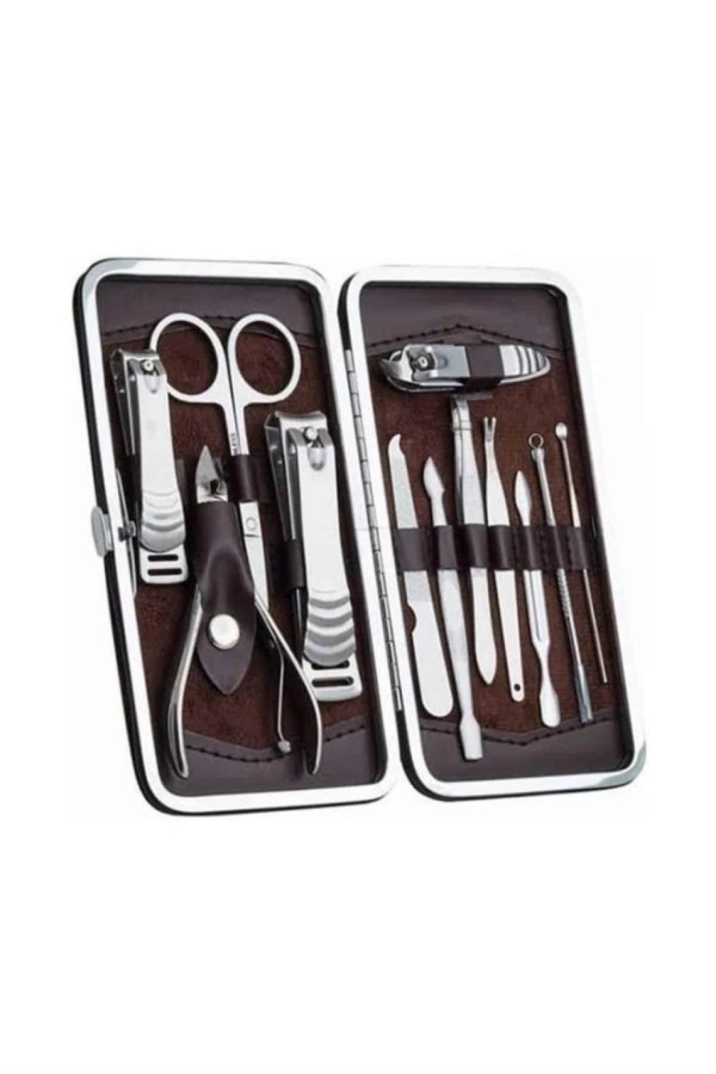Özel deri çantalı, hepsi bir arada bakım seti ile kişisel bakımınızı dilediğiniz her yerde yapabilirsiniz. El ve ayak bakımınızı evde kolayca yak zaman ve maliyet tasarrufu sağlarken, paslanmaz çelikten üretilmiş dayanıklı aletlerle uzun ömürlü kullanım elde edersiniz. Taşınabilir boyutu sayesinde çantanızda rahatça taşıyabilir, seyahatlerinizde yanınızda bulundurabilirsiniz. Setin içinde kulak çekme atı, çok amaçlı makas, manikür makası, üç farklı tırnak makası/düzeltici, pense, kir temizleme atı, kaş cımbızı, manikür bıçağı, tırnak törpüsü ve akne iğnesi yer almaktadır. Şık ve kullanışlı tasarımıyla hem kişisel bakımınızı tamamlamanızı sağlar hem de hediye olarak tercih edebileceğiniz harika bir seçenektir.