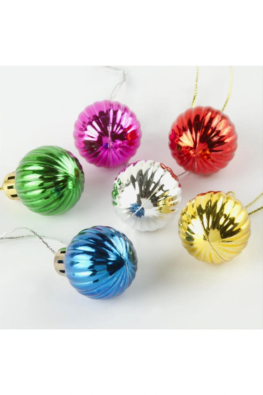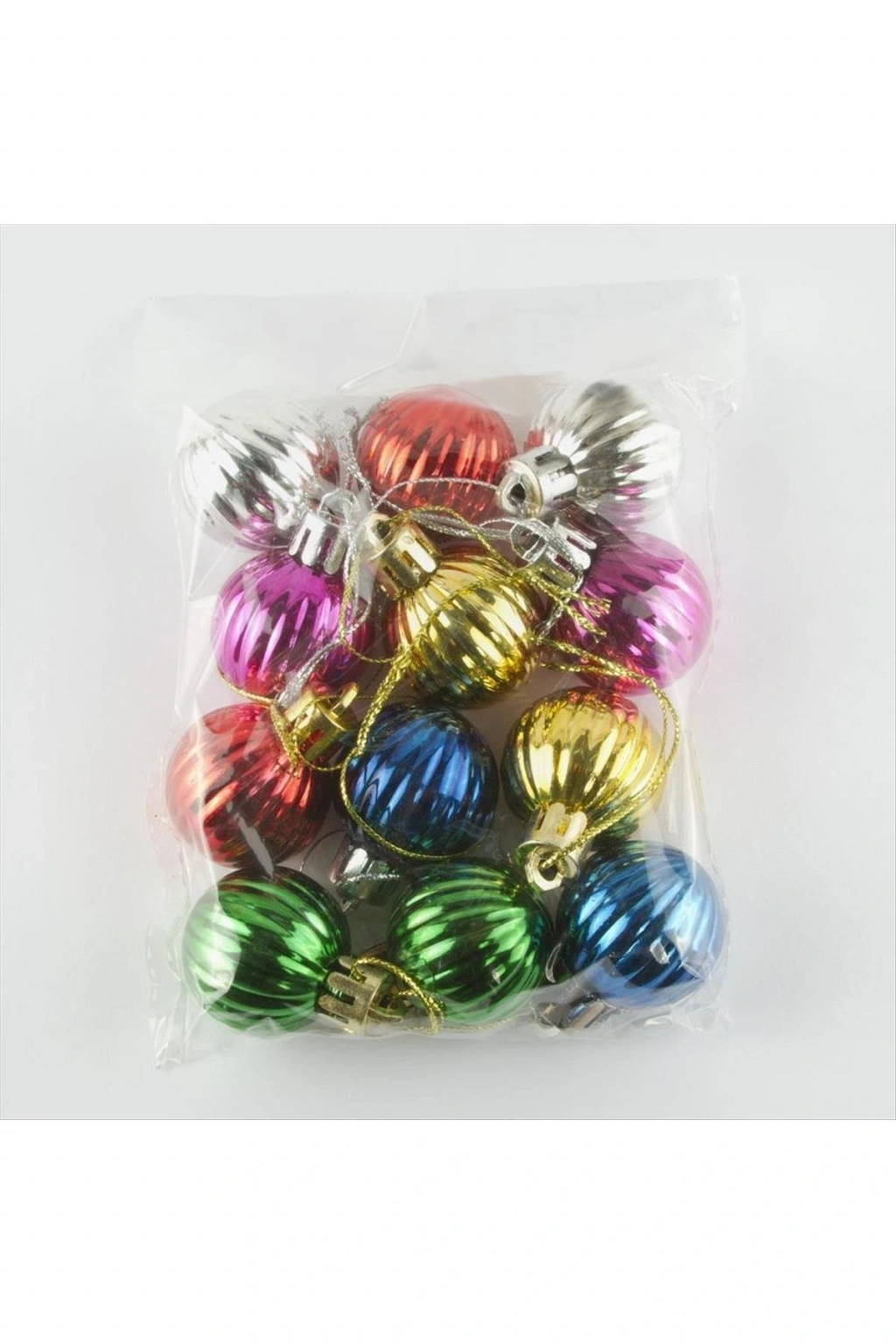 12'li Çizgili Küçük Boy Cici Top Yılbaşı Ağaç Süsü