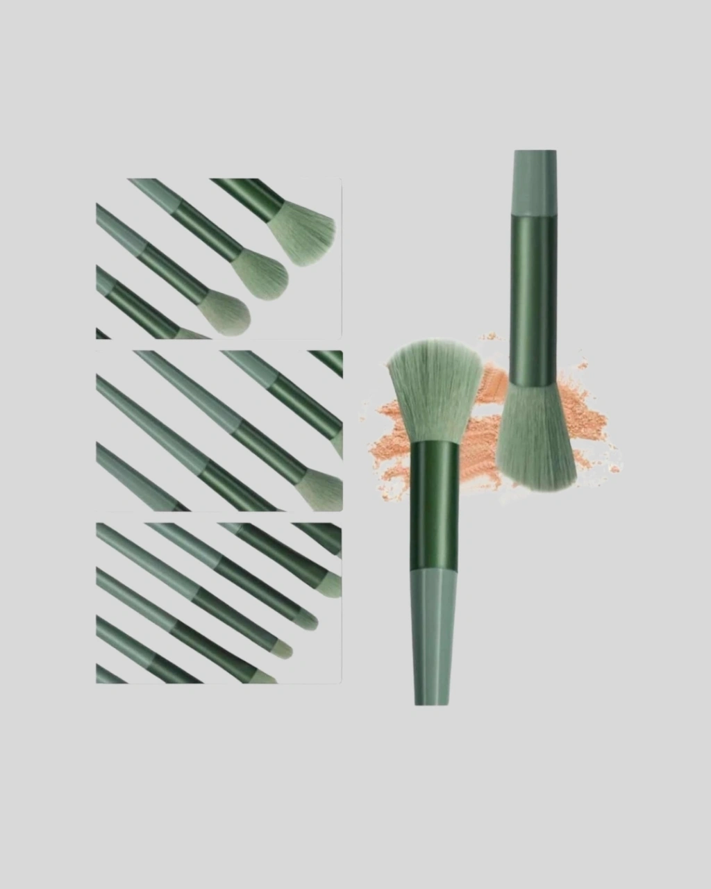 Bu makyaj fırça seti, dermatolojik olarak test edilmiş yapısıyla hassas ciltlerde bile güvenle kullanılabilir. Fırça kılları, hem gevşek hem preslenmiş pudra ürünlerini mükemmel şekilde tutar ve homojen şekilde dağıtır.Ergonomik sap tasarımı, uzun süreli makyaj uygulamalarında elinizi yormadan konfor sağlar. Kompakt ve hafif yapısı sayesinde seyahatlerde çantanızda kolaylıkla taşıyabilir, her yerde profesyonel bir makyaj deneyimi yaşayabilirsiniz.