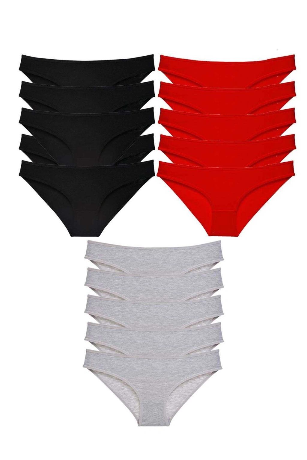 15 adet Süper Eko Set Likralı Kadın Slip Külot Siyah Kırmızı Gri
