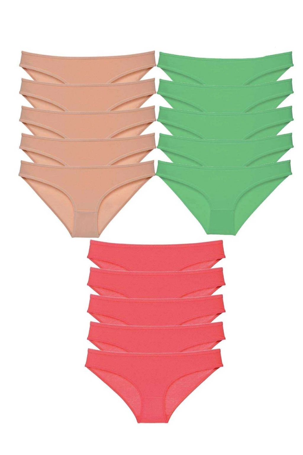 15 adet Süper Eko Set Likralı Kadın Slip Külot Ten Yeşil Fuşya