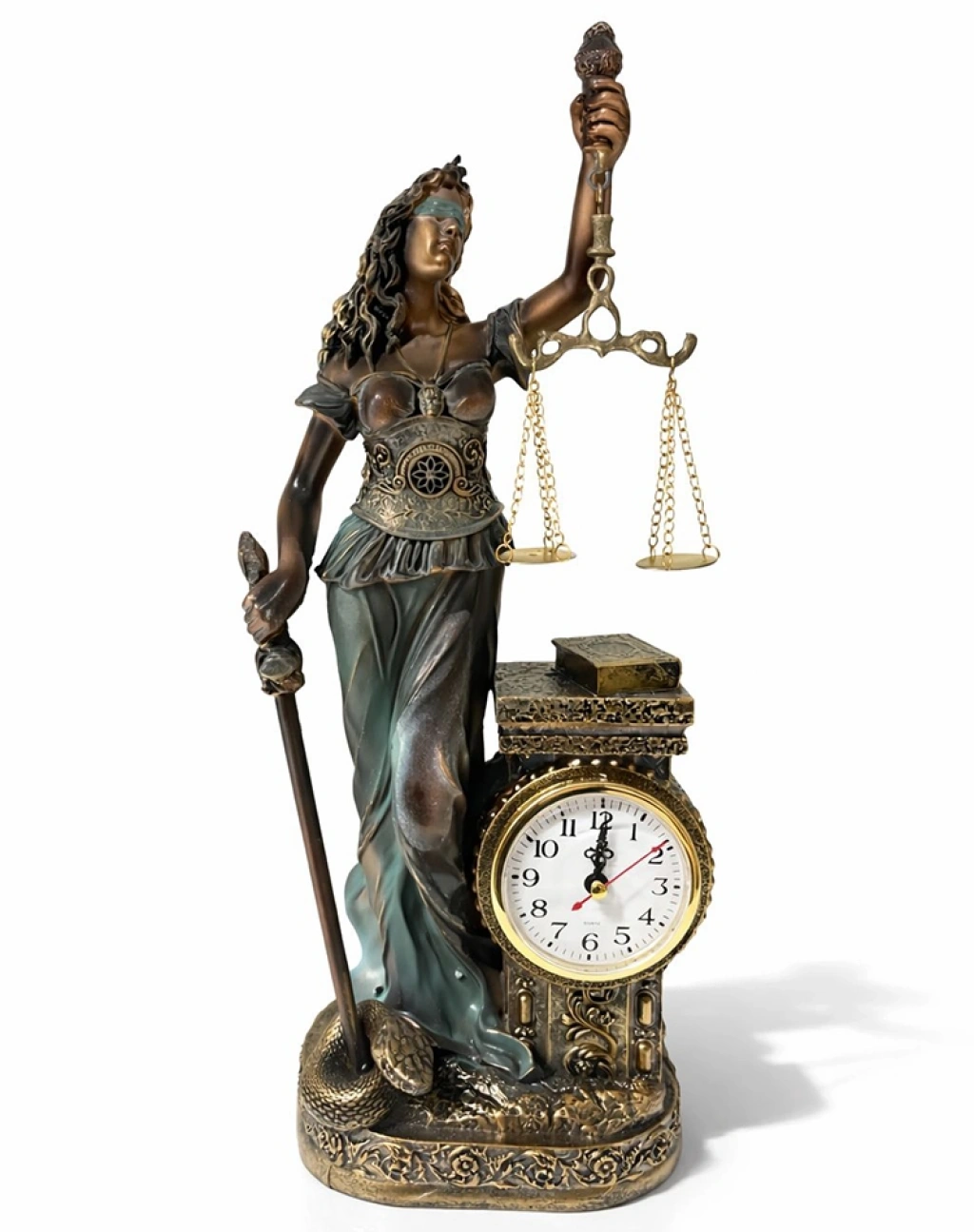 15X10 CM POLYESTER SAATLİ ADALET FİGÜRÜ Ürün ÖzellikleriPolyester Saatli Adalet Figürü, klasik adalet sembolünü kompakt ve dekoratif bir saat tasarımıyla bir araya getiren şık bir masa aksesuarıdır. 15x10 cm ölçüsündeki ideal boyutu sayesinde ofis masası, kitaplık ve çalışma alanlarında fazla yer kaplamadan estetik bir görünüm sunar. Elinde terazi tutan adalet figürü detayı ile güçlü bir adalet sembolü vurgusu oluştururken, alt bölümde yer alan saat kısmı ürüne fonksiyonel bir özellik kazandırır. Hem dekoratif hem kullanışlı yapısıyla masa düzenine zarif bir dokunuş sağlar. Dayanıklı polyester malzeme yapısı sayesinde uzun süreli kullanım sunar. Hukuk büroları, avukat ofisleri ve kurumsal çalışma alanları için anlamlı bir ofis dekor ürünü ve şık bir hediye alternatifi olarak tercih edilebilir.Ürün Teknik Özellikleri Özellik Açıklama Ürün Adı Polyester Saatli Adalet Figürü 15x10 Cm Malzeme Polyester Ölçü 15 x 10 cm Tasarım Adalet figürü ve entegre masa saati Kullanım Alanı Ofis, hukuk bürosu, masa üstü dekorasyon Paket İçeriği1 adet Polyester Saatli Adalet Figürü (15x10 cm)