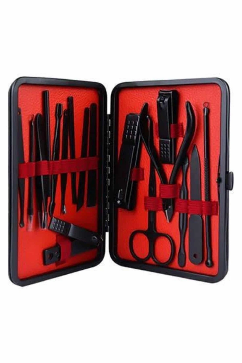 17 parça manikür pedikür seti, hem el hem de ayak bakımı için ihtiyaç duyacağınız tüm malzemeleri içerir. Paslanmaz çelikten üretilmiş olan set, dayanıklılık ve uzun ömür sağlar, ayrıca güvenli sterilizasyon olanağı sunar. Yeni nesil siyah kaymaz parlatma teknolojisi ile keskinlik artırılmış olup, es ve kullanım kolaylığı sağlar.Paslanmaz Çelik ve Yüksek Kalite:Tüm ürün parçaları, %100 paslanmaz çelikten üretilmiştir. Bu malzeme, sağlamlık ve dayanıklılık sağlar, korozyona karşı direnç gösterir ve enfeksiyon riskini minimize eder. Keskin ve düzgün kesimler yak, tırnak bakımını profesyonel seviyeye taşır.Şık ve Taşınabilir Deri Çanta:Set, şık bir deri kaplama çanta ile birlikte gelir. Fermuarla kolayca açılıp kapanabilen bu çanta, tüm aletleri düzenli tutar ve taşımasını kolaylaştırır. Hafifliği sayesinde, seti her gün çantanızda taşıyabilir veya seyahatlerde yanınıza alabilirsiniz.Kapsamlı Bakım Seti:Bu set, el ve ayak bakımının her aşamasını kolaylaştıran birçok araca sahiptir. İçeriğinde büyük ve küçük tırnak makasları, sivri uçlu tırnak makası, çift uçlu komedon, törpü, et ittirici, pedikür bıçakları ve daha birçok kullanışlı alet bulunur. Bu araçlarla tırnak bakımınızı profesyonel seviyeye çıkarabilirsiniz.Sağlık ve Temizlik:Ürünler, kolayca temizlenebilir ve sterilize edilebilir özelliklere sahiptir. Bu da hijyen açısından büyük önem taşır, çünkü enfeksiyon riskini en aza indirir. Paslanmaz çelik yapısı, uzun süreli kullanımda bile dayanıklılığını korur.Paket İçeriği: 1 adet büyük tırnak makası 1 adet küçük tırnak makası 1 adet sivri uç tırnak makası 1 adet çift uçlu komedon 1 adet törpü 1 adet et ittirici 1 adet çift taraflı tırnak kaldırma aleti 1 adet makas 1 adet pedikür bıçağı 1 adet çarpraz pedikür bıçağı 1 adet kavisli pedikür bıçağı 1 adet V şeklinde et itme 1 adet itme çubuğu 1 adet tırnak temizleme 1 adet cımbız 1 adet iğneli komedon 1 adet kulak temizlemeÖzellikler: Yüksek kaliteli paslanmaz çelik malzeme Şık ve taşıması kolay deri çanta Kolay sterilizasyon ve temizlik Tırnak bakımında profesyonel sonuçlar Seyahat dostu, taşınabilir yapı