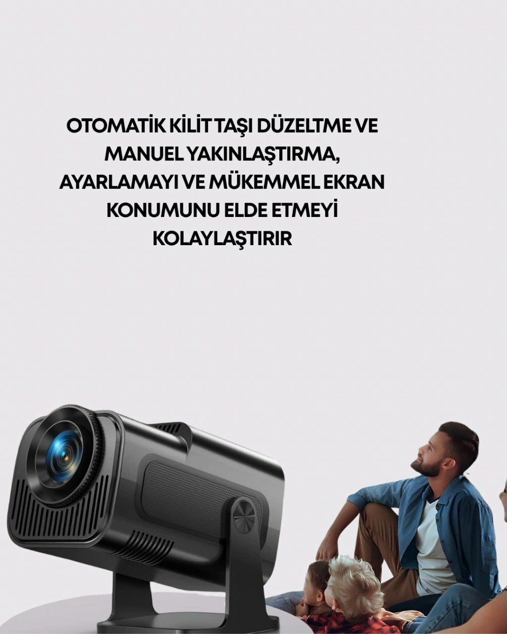 Bu modelin en dikkat çeken özelliklerinden biri 180 derece dönebilen gövde tasarımıdır. Bu esnek yapı sayesinde cihazı düz zeminden tavana kadar birçok farklı açıya rahatlıkla yönlendirebilirsiniz. Özellikle yatakta uzanarak tavanı ekran olarak kullanmak isteyen kullanıcılar için eşsiz bir deneyim sunar.Projektörü yatay veya dikey her yöne çevirebilmeniz, kullanımı oldukça esnek hale getirir. Bu sayede farklı mekanlarda — ister yatak odası, ister salon, ister açık hava — cihazın pozisyonunu hızlıca değiştirebilirsiniz.Kompakt ve hafif tasarımıyla birlikte sadece 750 gram ağırlığa sahiptir. Bu, taşıma kolaylığı sunarken aynı zamanda farklı yüzeylerde sabit durmasını da sağlar. 120.000 lümen parlaklık değeri ile düşük ışıklı ortamlarda bile son derece canlı ve net görüntüler elde edebilirsiniz.Lamba ömrü ise 50.000 saate kadar dayanır. Bu, haftada birkaç saatlik kullanımda yıllarca bakım gerektirmeden sorunsuz çalışacağı anlamına gelir.Her açıdan görüntü elde edebilen bu döner tasarım, ev konforunu sinema konforuna dönüştürmek isteyen kullanıcılar için büyük avantaj sağlar.