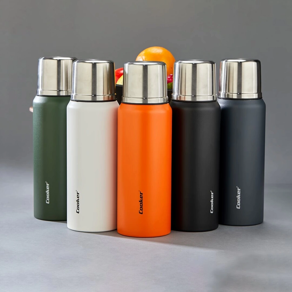1LT DAĞCI TERMOS RENKLİ ÇİFT CİDARLI PASLANMAZ ÇELİK - SIZDIRMAZ KAPAK = BARDAK