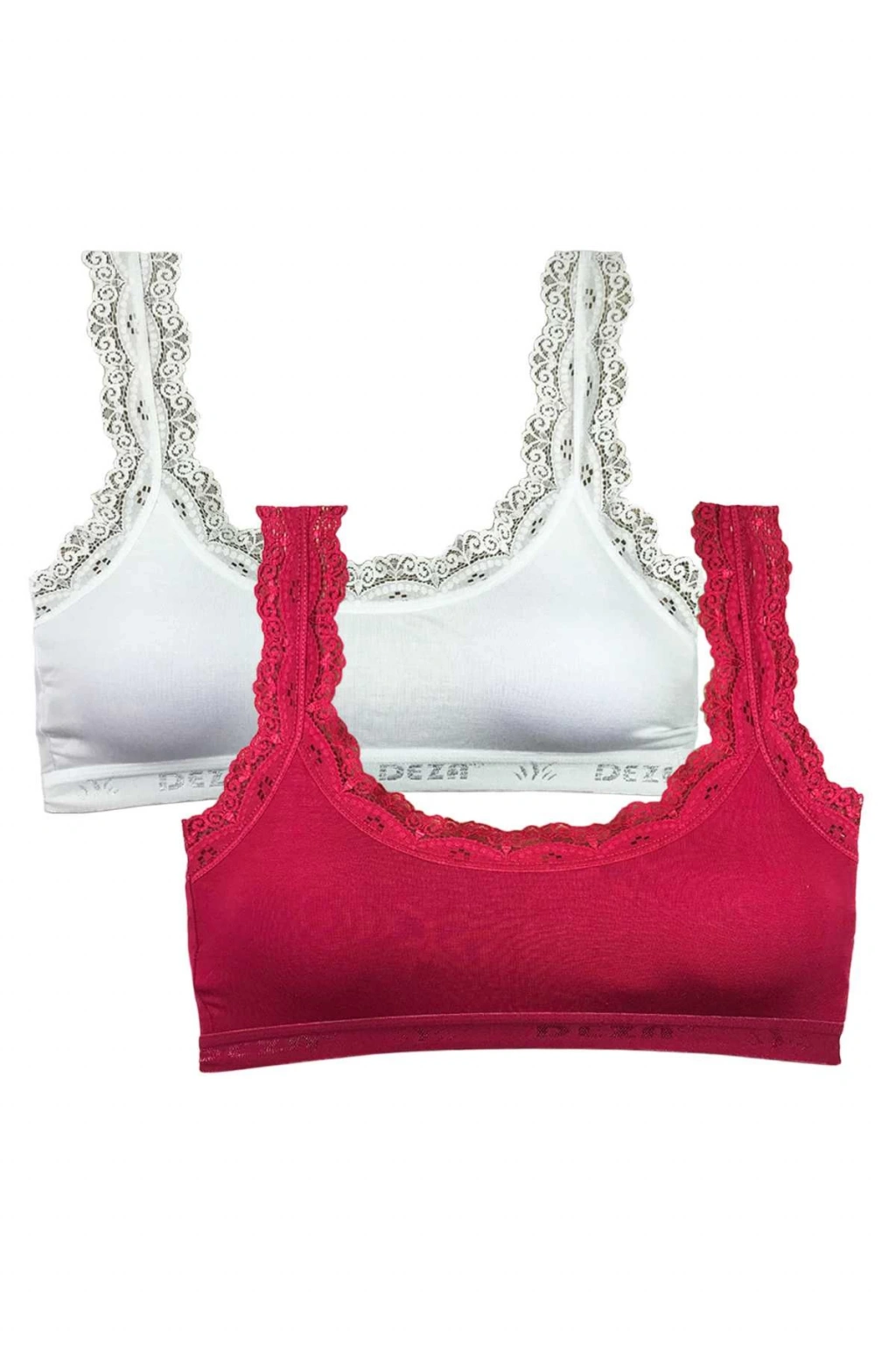 2 Adet Dantel Nakış İşlemeli Pedli Bambu Kadın Büstiyer Beyaz Bordo
