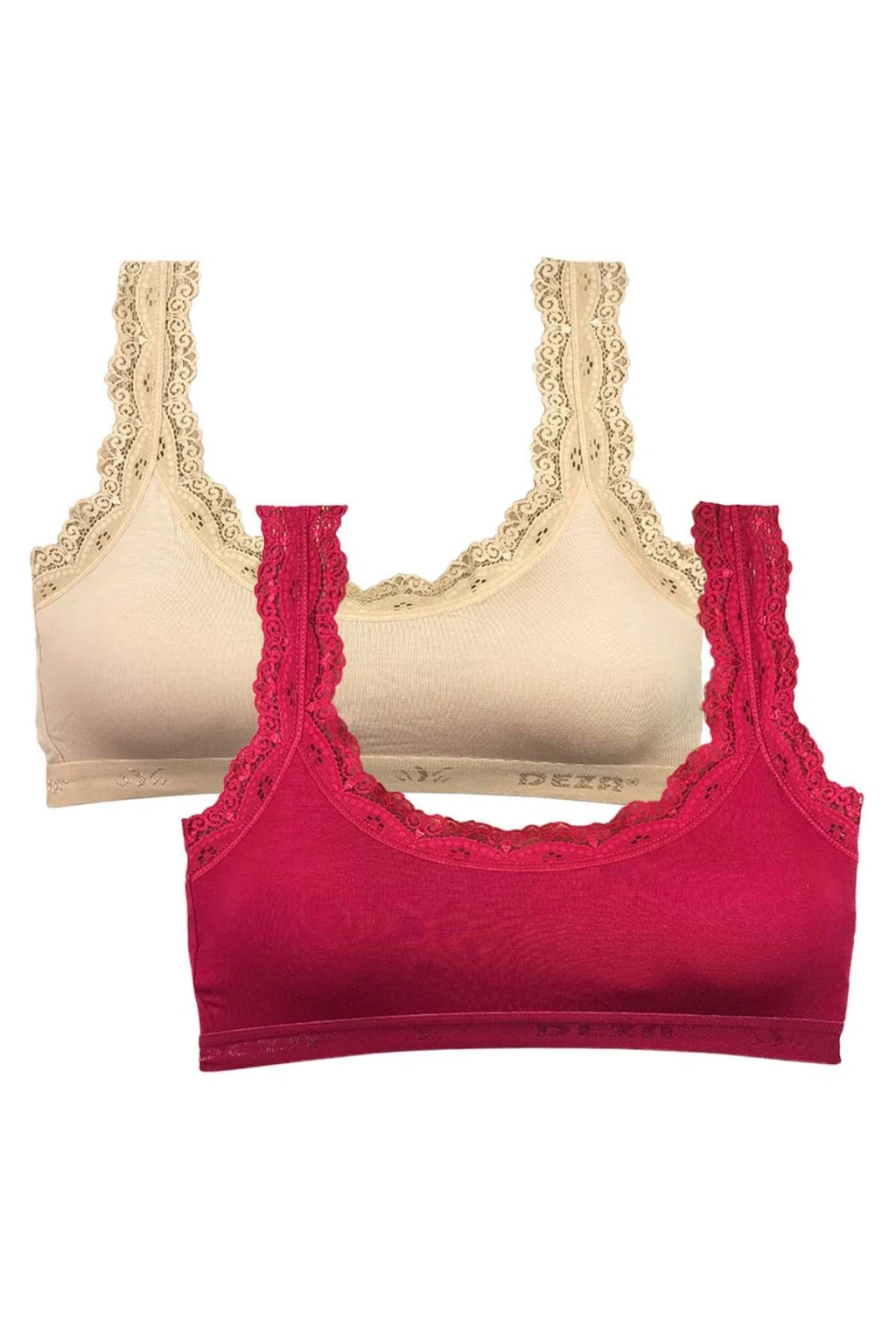 2 Adet Dantel Nakış İşlemeli Pedli Bambu Kadın Büstiyer Ten Bordo