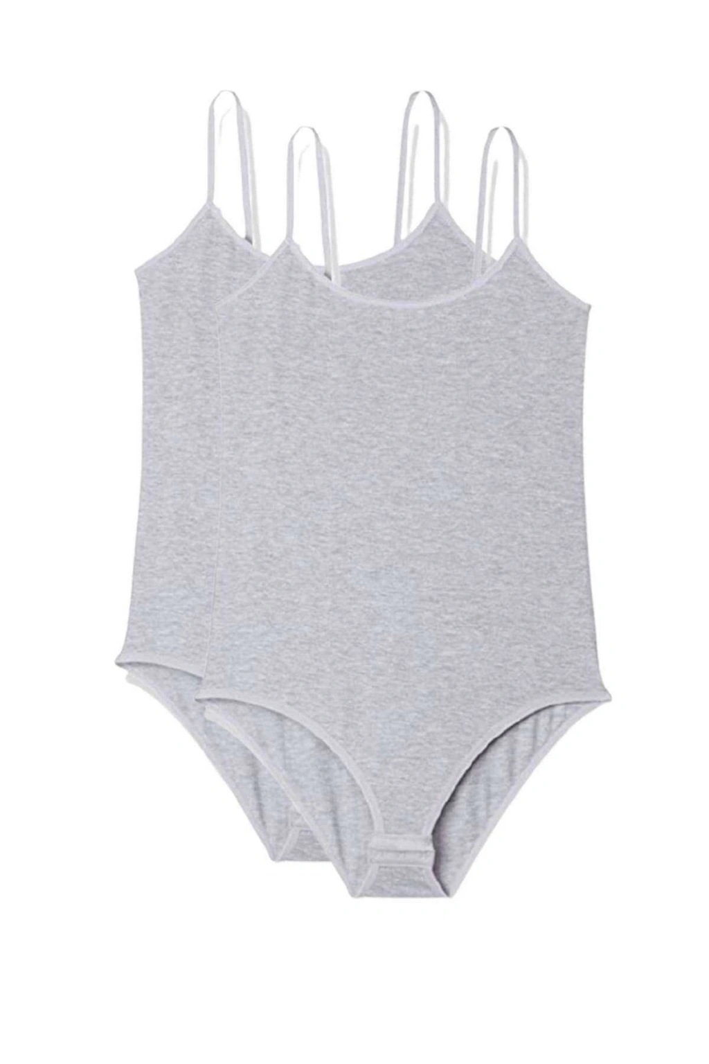 2 Adet İp Askılı Kadın Çıtçıtlı Body Gri