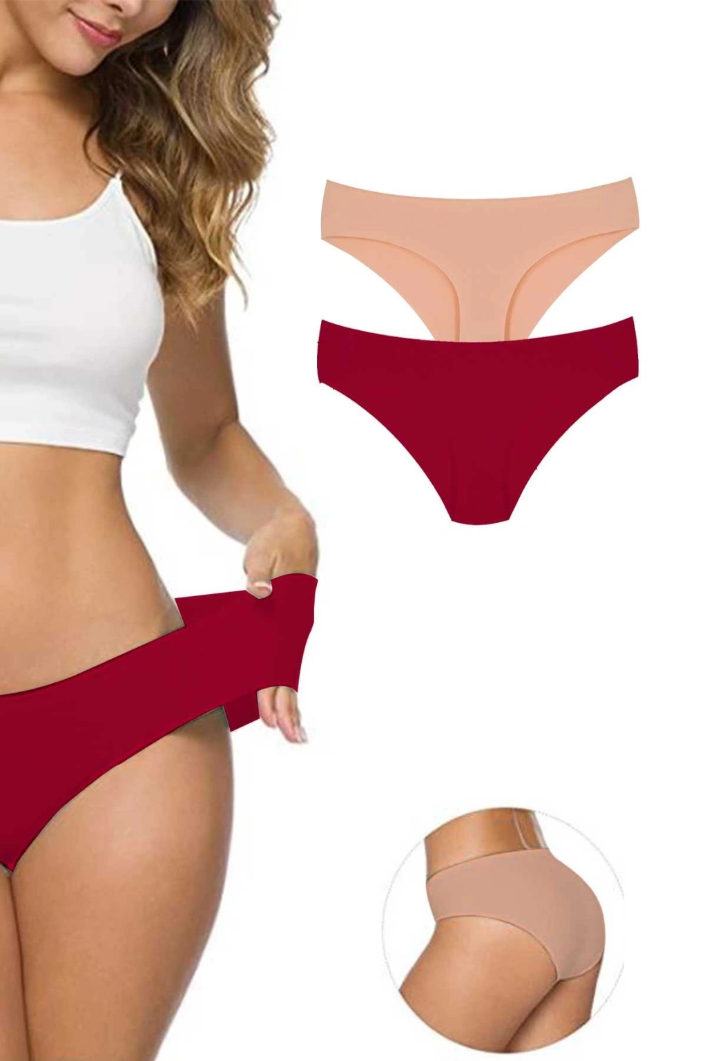 2 Adet Kadın Dikişsiz Lazer Kesim Esnek İz yapmayan Külot S6