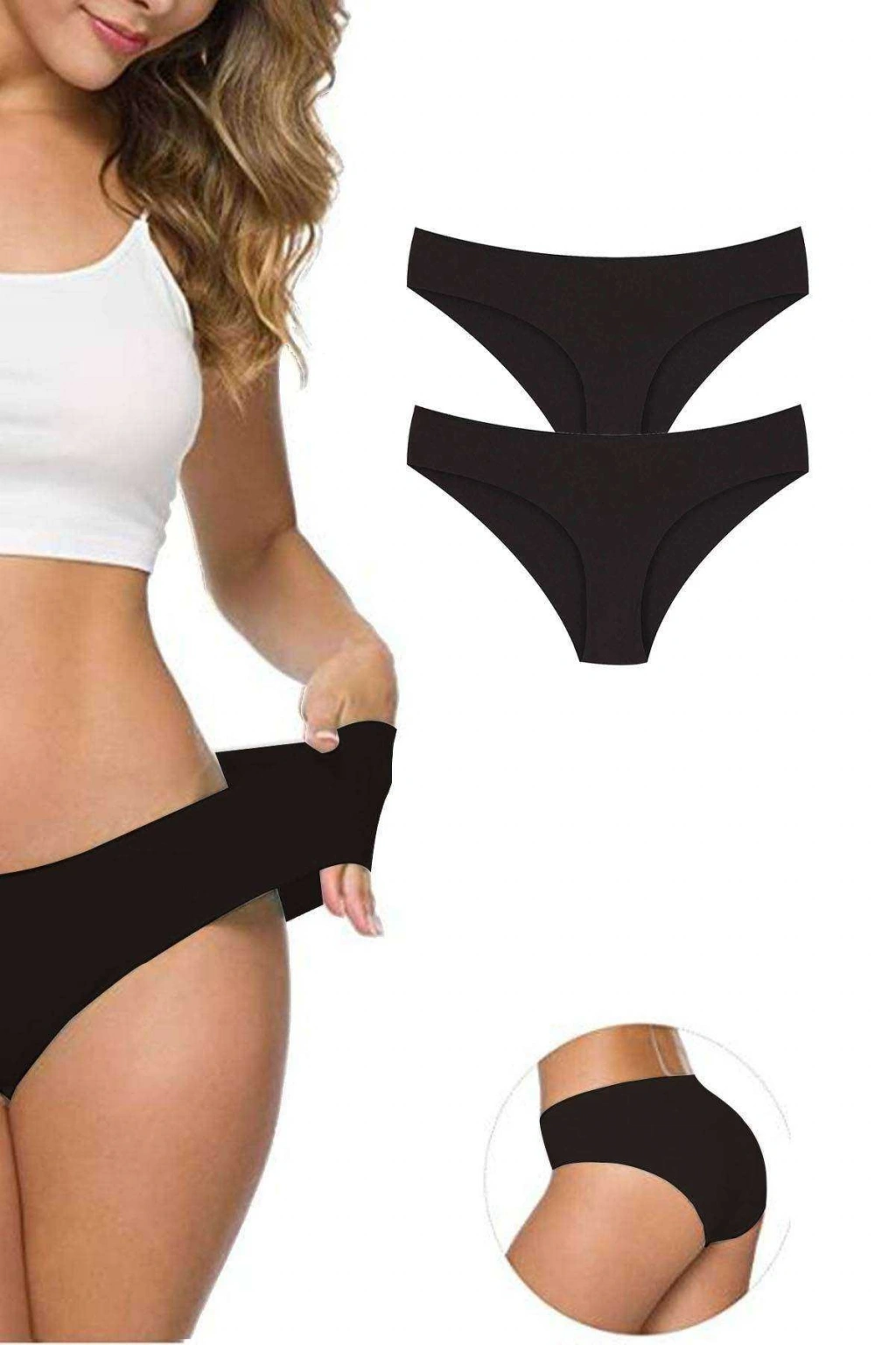 2 Adet Kadın Dikişsiz Lazer Kesim Esnek İz yapmayan Külot Siyah
