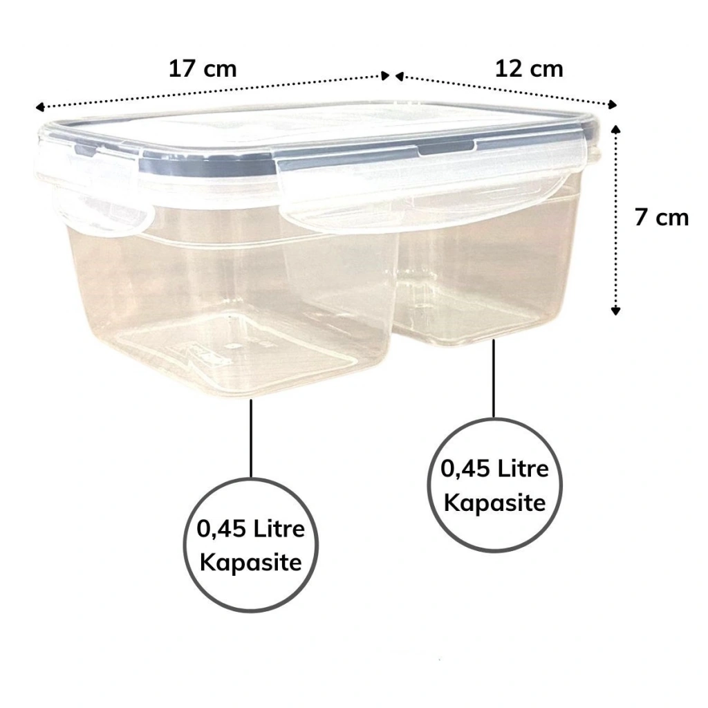2 Bölmeli 0,45+0,45 Litre Kilitli Kapaklı Erzak Saklama Kabı Diyet Saklama Kabı Taşınabilir Beslenme Kabı