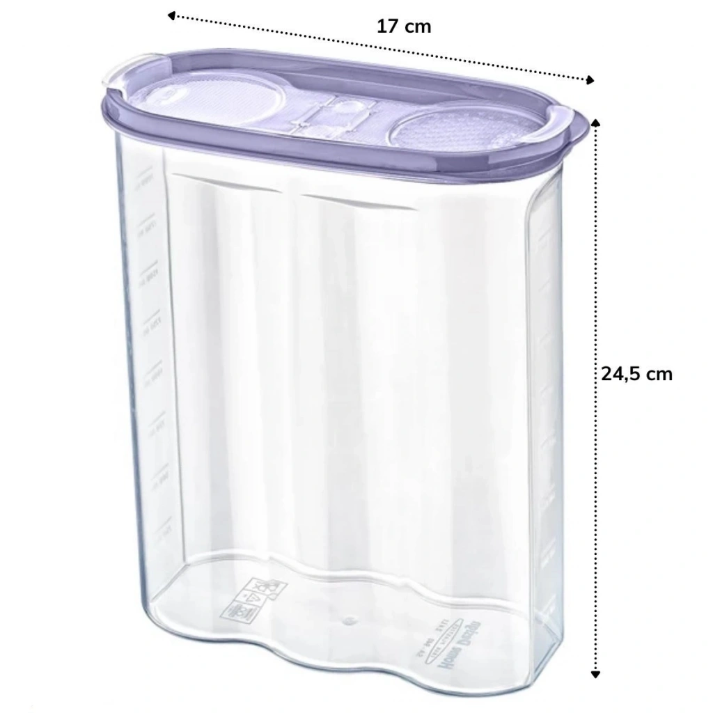 2 Kapaklı Ölçekli Erzak Kuru Gıda Saklama Kutusu Kabı 2,4 Litre-SA940 (4887)