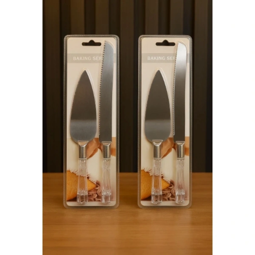 2 PARÇA SERVİS SETİÜrün Özellikleri2 Parça Servis Seti şık ve özel tasarımıyla pasta, kek ve tatlı servislerinde hem estetik hem de pratik kullanım sağlar. Set içerisinde yer alan uzun servis bıçağı 33 cm, spatula ise 26 cm uzunluğunda olup ideal boyutları sayesinde dilimleri düzgün şekilde kesip servis etmeye yardımcı olur. Şeffaf görünümlü kabza tasarımı sofralara zarif bir görünüm kazandırırken paslanmaz çelik servis yüzeyleri dayanıklılık ve uzun ömürlü kullanım sunar. Kesim bıçağı 4,5 cm genişliğiyle rahat kavrama ve dengeli kesim sağlarken, spatula yüzeyi dilimleri kırmadan almayı kolaylaştırır. Özel günler, doğum günleri, nişan ve düğün pastalarında tercih edilebilecek zarif sunum alternatifi olan bu set, mutfakta hem günlük kullanıma hem davet sofralarına uygundur. Paketli halde gönderilir.Paket İçeriği1 Adet Servis Bıçağı (33 cm)1 Adet Servis Spatulası (26 cm)