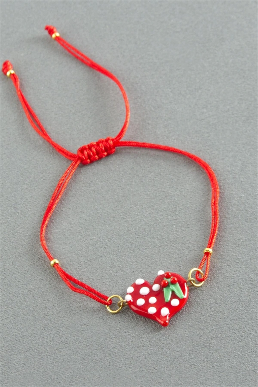 Bileklik; Ürün malzemesi cam ve iptir. Kartlıdır. Ürün arkası asansörlüdür. Bileğe göre ayarlanabilir. İp renkleri siyah ve kırmızı karışık olarak gönderilecektir.