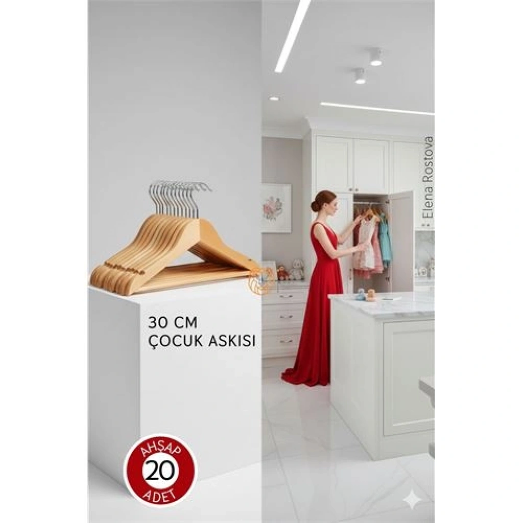 20'li Lüks Masif Ahşap Çocuk Askı Seti - Elena Rostova Stil Seçkisi - 30 cm