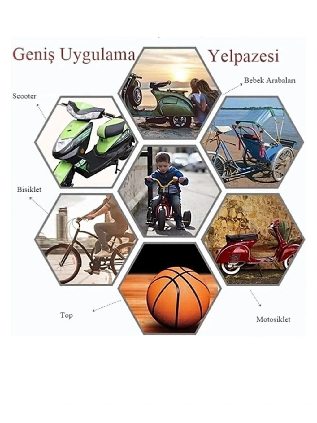 - Aracınızın lastiği, Top, bot, Bisiklet lastiği, Motorsiklet lastikği Ve her türlü hava gerektiren malzemeler