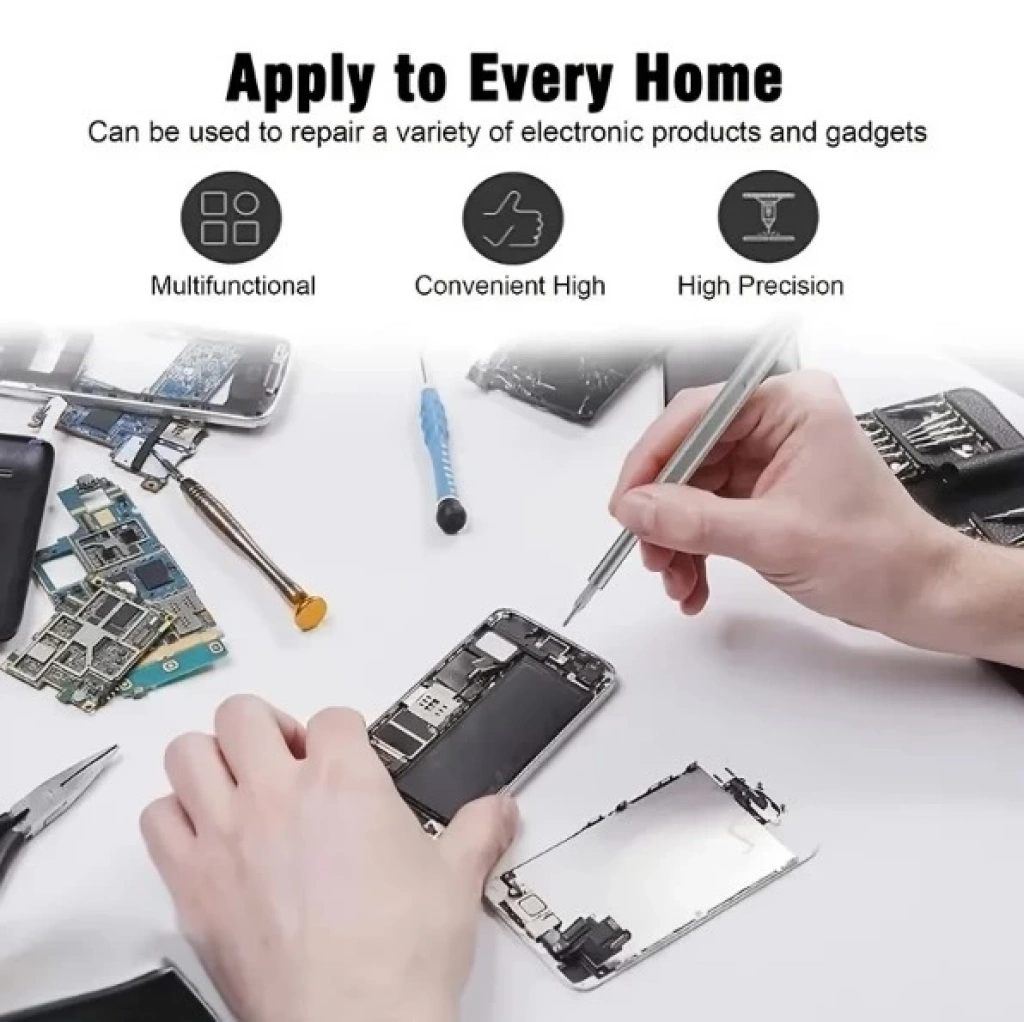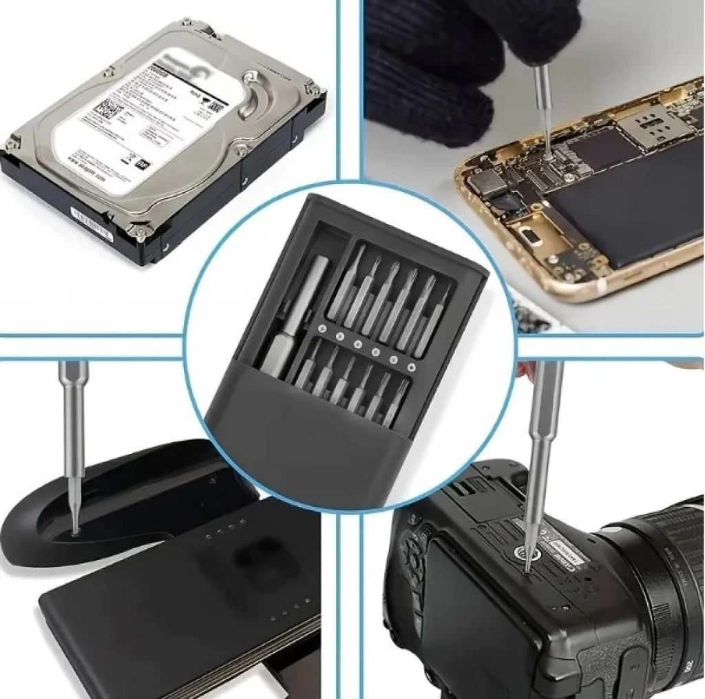 25 PARÇA TORNAVİDA SETİ1.24-in-1 tornavida seti: bu Set 24 farklı tornavida ucu içerir, bu da çok yönlü ve çeşitli görevler için uygundur. Cep telefonları, gözlükler, kameralar, saatler ve diğer ev eşyalarını onarmak için özelleştirilebilir.2. Geniş uygulama yelpazesi: kapsamlı tornavida uçları seti ile, bu set hem profesyonel hem de ev kullanım için mükemmeldir. Farklı onarım ve bakım görevlerini kolaylıkla halledebilmenizi sağlayan çok çeşitli vida tipleri ve boyutları kapsar.3. Uygun depolama: set, tornavida uçları için güvenli bir depolama sağlayan bir geçmeli kilitli plastik kutu ile birlikte gelir. Kutunun kompakt boyutu, araçlarınızın organize edilmesini ve erişilebilir olmasını sağlayarak taşımayı ve saklamayı kolaylaştırır.4. Dayanıklı ve güvenilir: tornavida uçları, dayanıklılık ve uzun ömürlü performans sağlayan yüksek kaliteli malzemelerden yapılmıştır. Sık kullanıma dayanacak şekilde tasarlanmıştır ve verimli vidalama için güvenilir bir tutuş sağlar.5. Ergonomik tasarım: tornavida sapı, rahat ve kaymaz bir tutuş sağlayan, akılda ergonomik prensiplerle tasarlanmıştır. Bu, hassas ve kontrollü kullanım sağlar, onarım sırasında hassas eşyalara kayma veya zarar verme riskini azaltır.