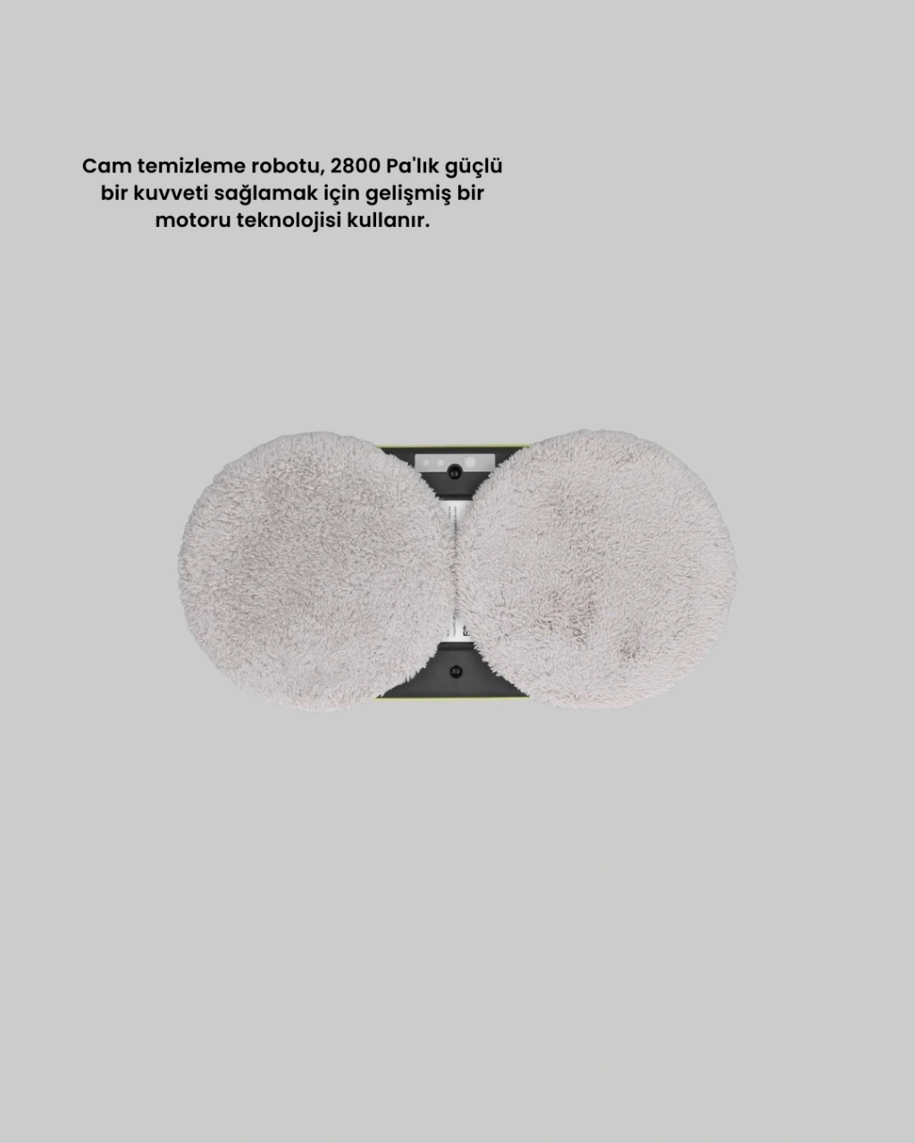 Bu akıllı cam temizleme robotu, güçlü motor teknolojisi sayesinde 2800 Pa emiş gücü sunar. Değişken frekanslı emiş sistemi, cam yüzeyin kirlilik derecesini algılayarak gücü otomatik olarak optimize eder. Böylece cam yüzeye sıkı tutunma sağlanır ve temizlik sırasında kayma ya da düşme riski ortadan kaldırılır.Robotun çift diskli ovma sistemi, insan eliyle yapılan silme hareketini taklit eder. Dairesel temizleme tekerlekleri dakikada yaklaşık 70 devir yak camı derinlemesine temizler. Bu sayede yarım çabayla iki kat temizlik performansı elde edilir. Cam yüzey çizilmeden nazikçe silinir ve parlak bir görünüm kazanır.Yüksek alanlardaki pencereleri temizlerken merdiven veya tırmanma ihtiyacını ortadan kaldırarak güvenli bir çözüm sunar. Ev, ofis ve yüksek katlı binalar için idealdir.