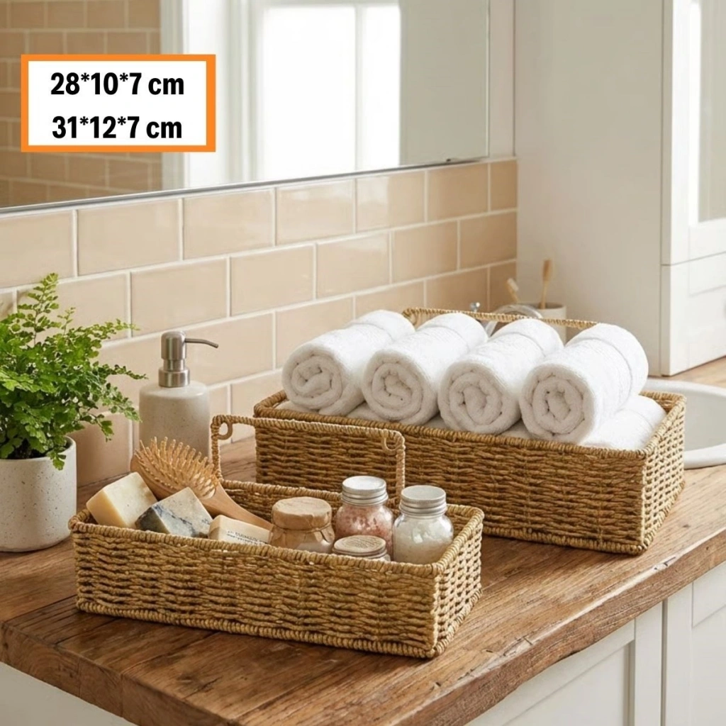 2’li Duvar Askılı Plastik Rattan Organizer Seti, doğal hasır dokulu şık tasarımı ve fonksiyonel yapısıyla yaşam alanlarınızda pratik bir düzen sağlar. Duvara asılabilir yapısı sayesinde tezgâh ve zemin alanı kaplamadan maksimum depolama alanı sunar.