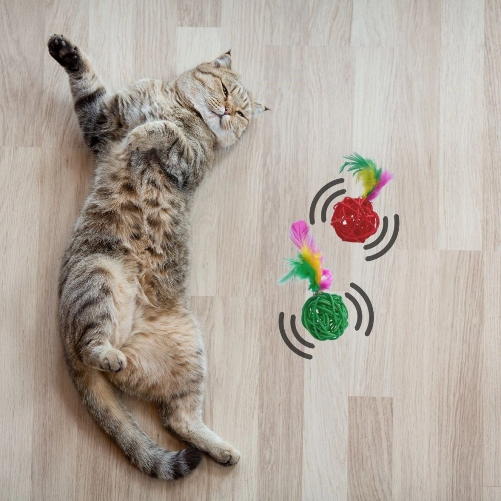 Dahili Çan --- Evcil hayvanınızın oynamasını ve evcil hayvanla etkileşimini artırabilen renkli tüy ve yerleşik zillere sahip bu toplar.