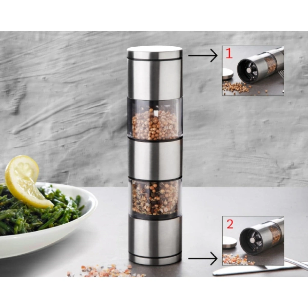 2'Sİ 1 ARADA AKRİLİK EL DEĞİRMENİÜrün Özellikleri2’si 1 Arada Akrilik El Değirmeni, çift hazneli tasarımı sayesinde tuz ve karabiberi aynı öğütücüde kullanma imkanı sunar. Şeffaf akrilik gövdesi, içerisindeki baharatları kolayca görmenizi sağlar. Tek elle pratik öğütme mekanizması ile kullanım kolaylığı sunar. Kompakt ve ergonomik yapısı sayesinde mutfağınızda fazla yer kaplamaz. Dayanıklı malzemeden üretilmiş olup uzun ömürlü kullanım sağlar. Kolay temizlenebilir yüzeyiyle hijyenik bir deneyim sunar. Paket İçeriği1 Adet 2’si 1 Arada Akrilik El Değirmeni