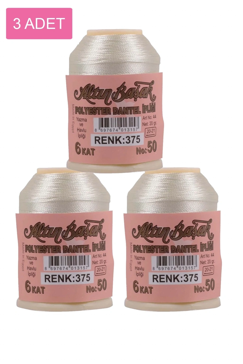 3 Adet Altınbaşak Oya ve Dantel İpi 20 gr - - No: 375