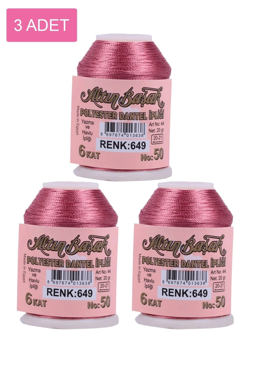 3 Adet Altınbaşak Oya ve Dantel İpi 20 gr - - No: 649