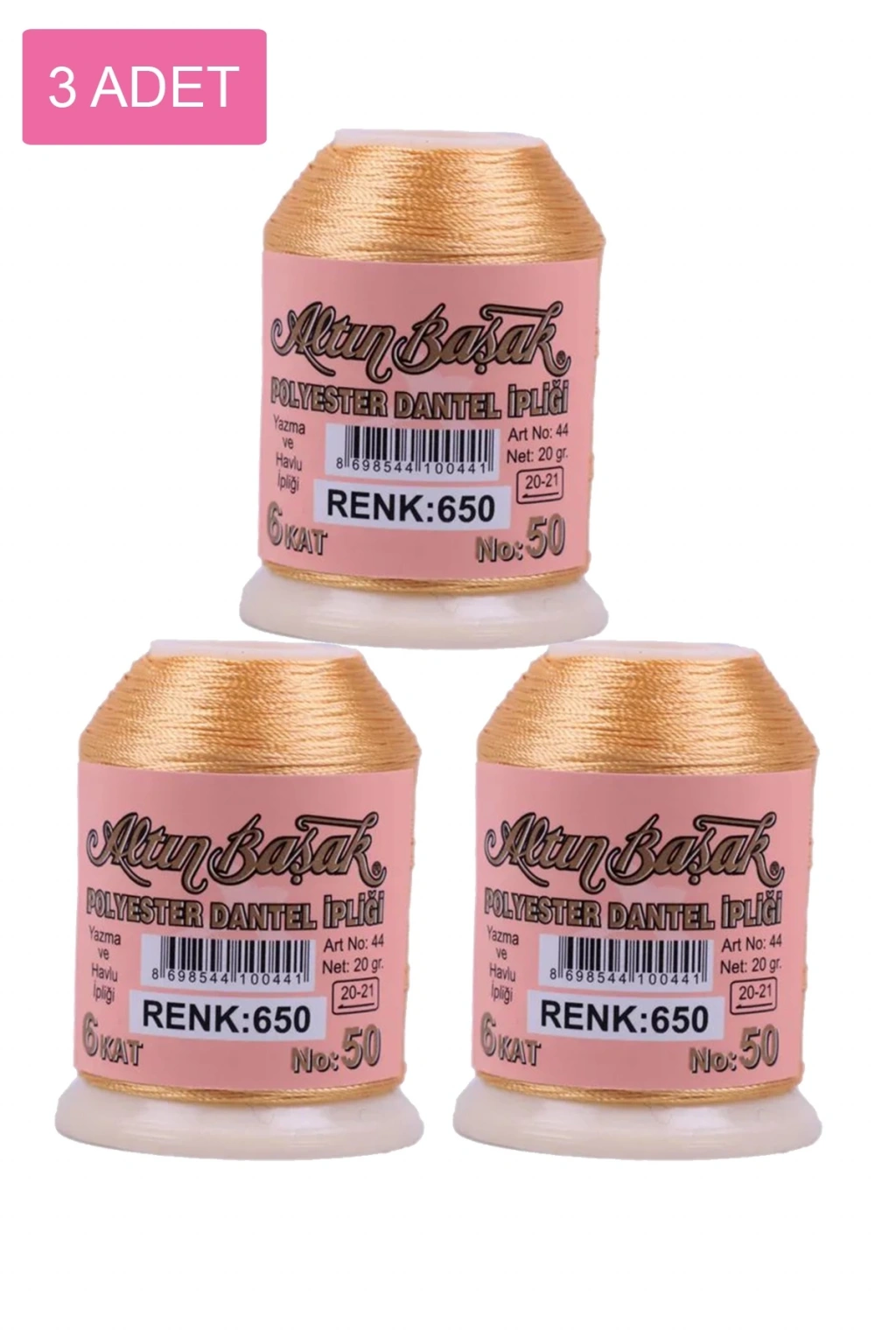 3 Adet Altınbaşak Oya ve Dantel İpi 20 gr - - No: 650
