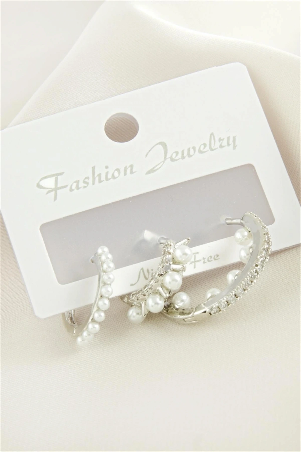 3 Adet Çivi İnci Zirkon Taşlı Küpe