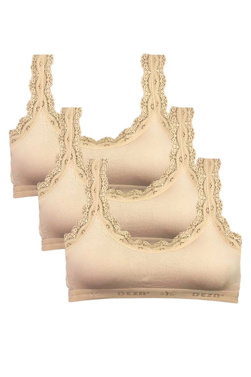 3 Adet Dantel Nakış İşlemeli Pedli Bambu Kadın Büstiyer Ten