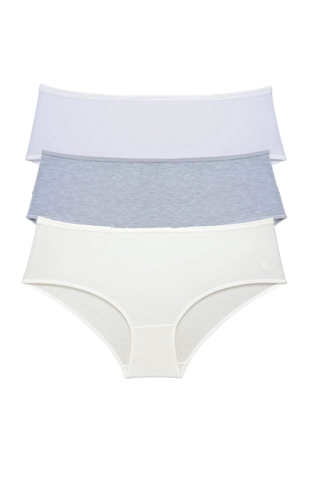 3 Adet Kadın Yüksek Bel Bato Külot Beyaz Gri Krem